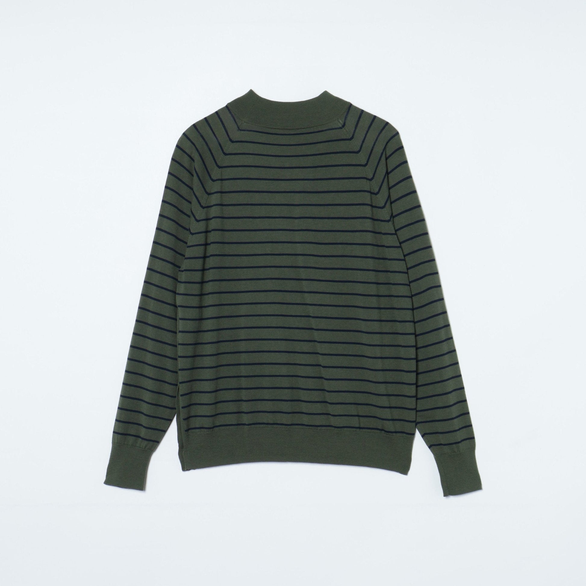 【L】ウォッシャブルウール 天竺ボーダーニットプルオーバー