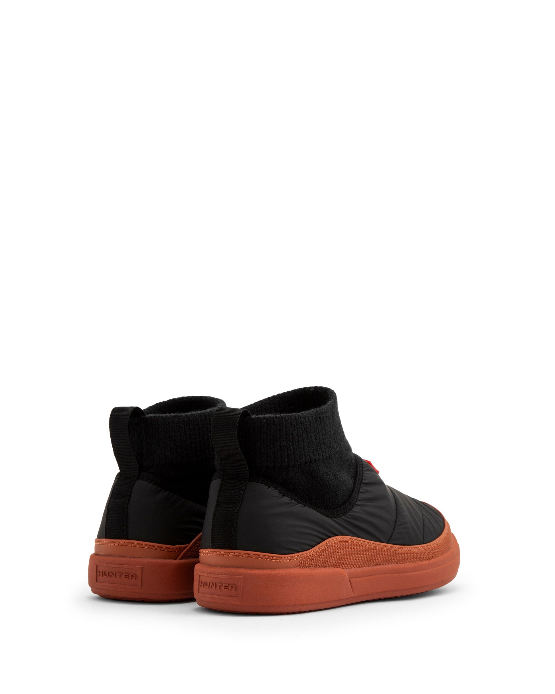 インアウトパファーニットカフブーツは、家の中でもアウトドアでも履けるようにデザインされた、究極のスリッポンです。見た目だけでなく履き心地も重視したこのブーツは、トップラインに沿ったニット製の履き口で着脱も簡単です。アッパーはサーマルフリース層のリサイクルナイロン製で、ミッドソールにはEVA、アウトソールにはラバーを使用しています。