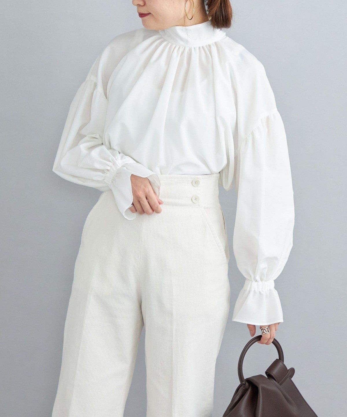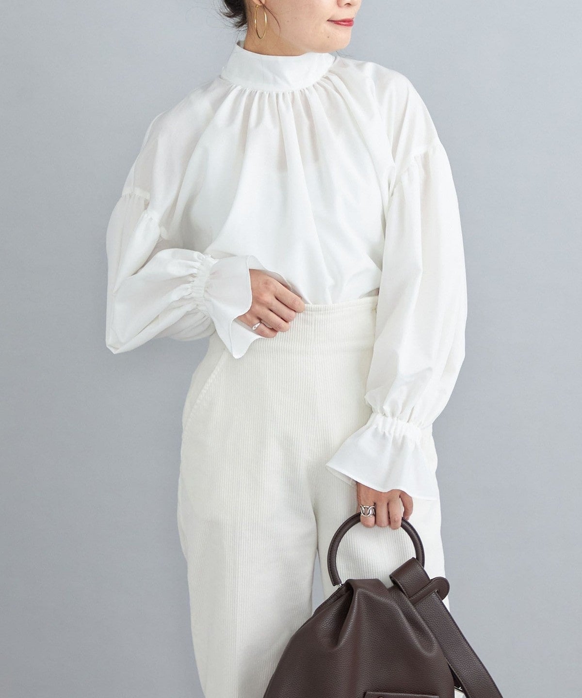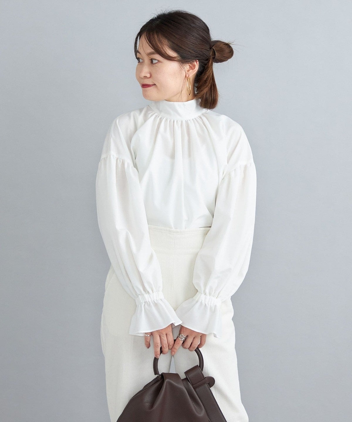 ・やさしい印象に仕上がるふんわりとしたスリーブは、そのまま着ても、捲ってパフスリーブ風にしても素敵に着こなせます。