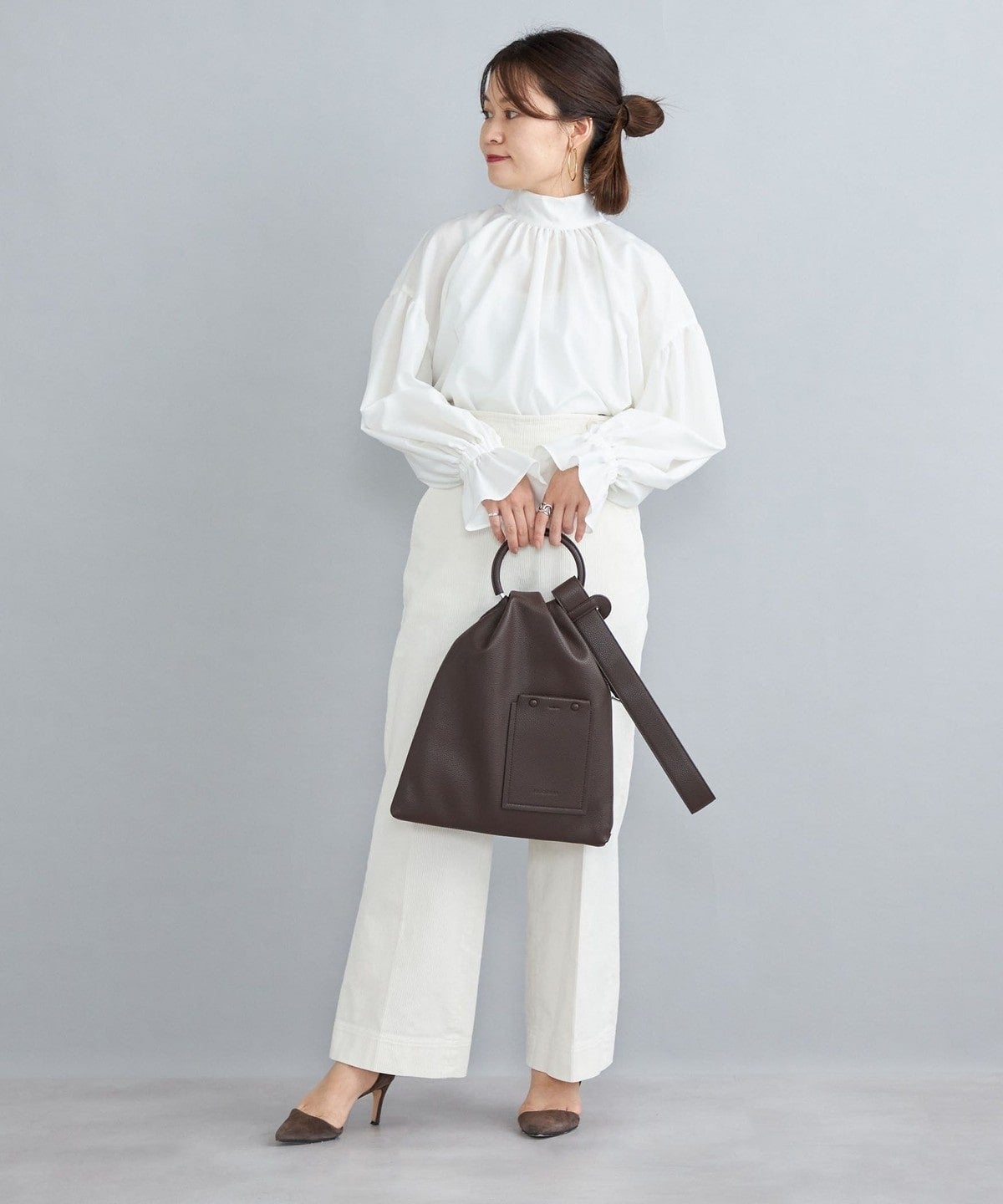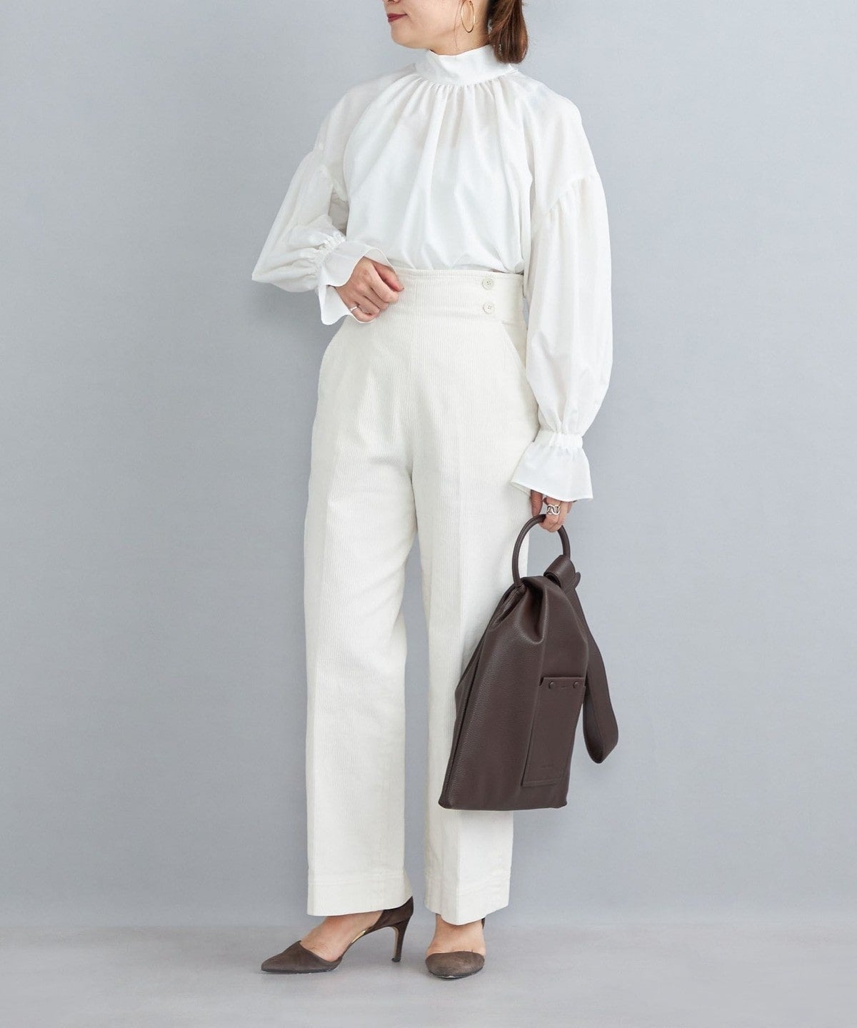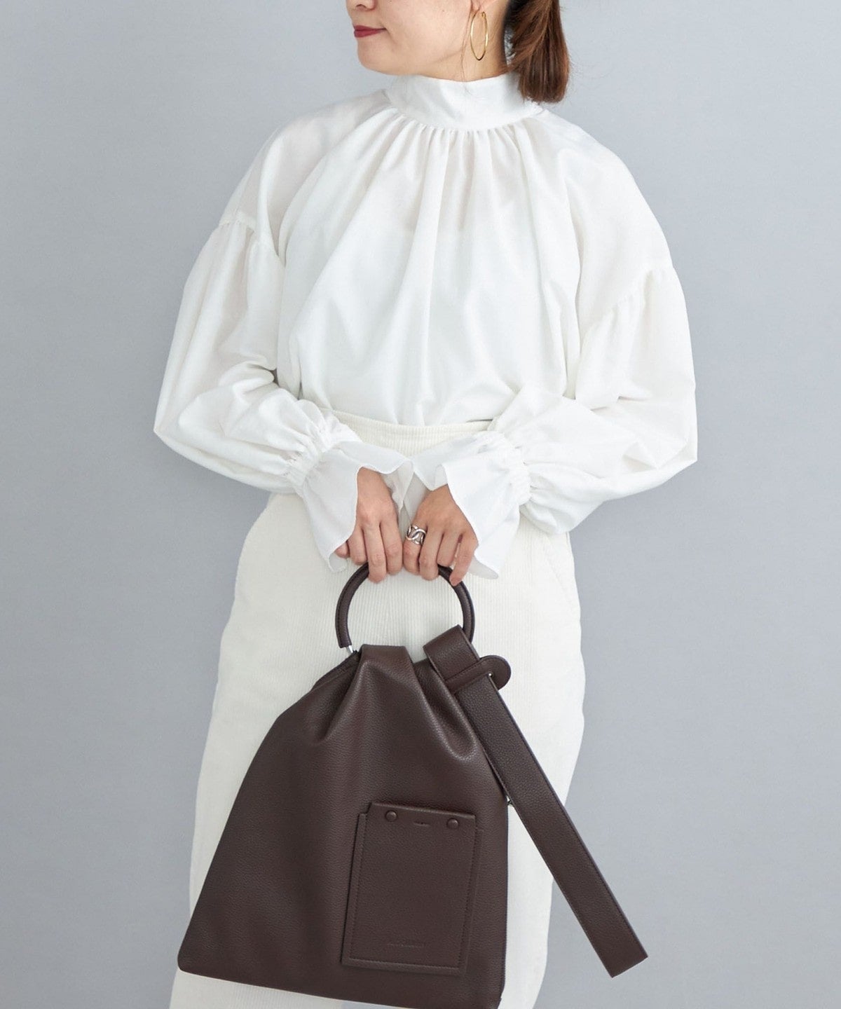 ・やさしい印象に仕上がるふんわりとしたスリーブは、そのまま着ても、捲ってパフスリーブ風にしても素敵に着こなせます。