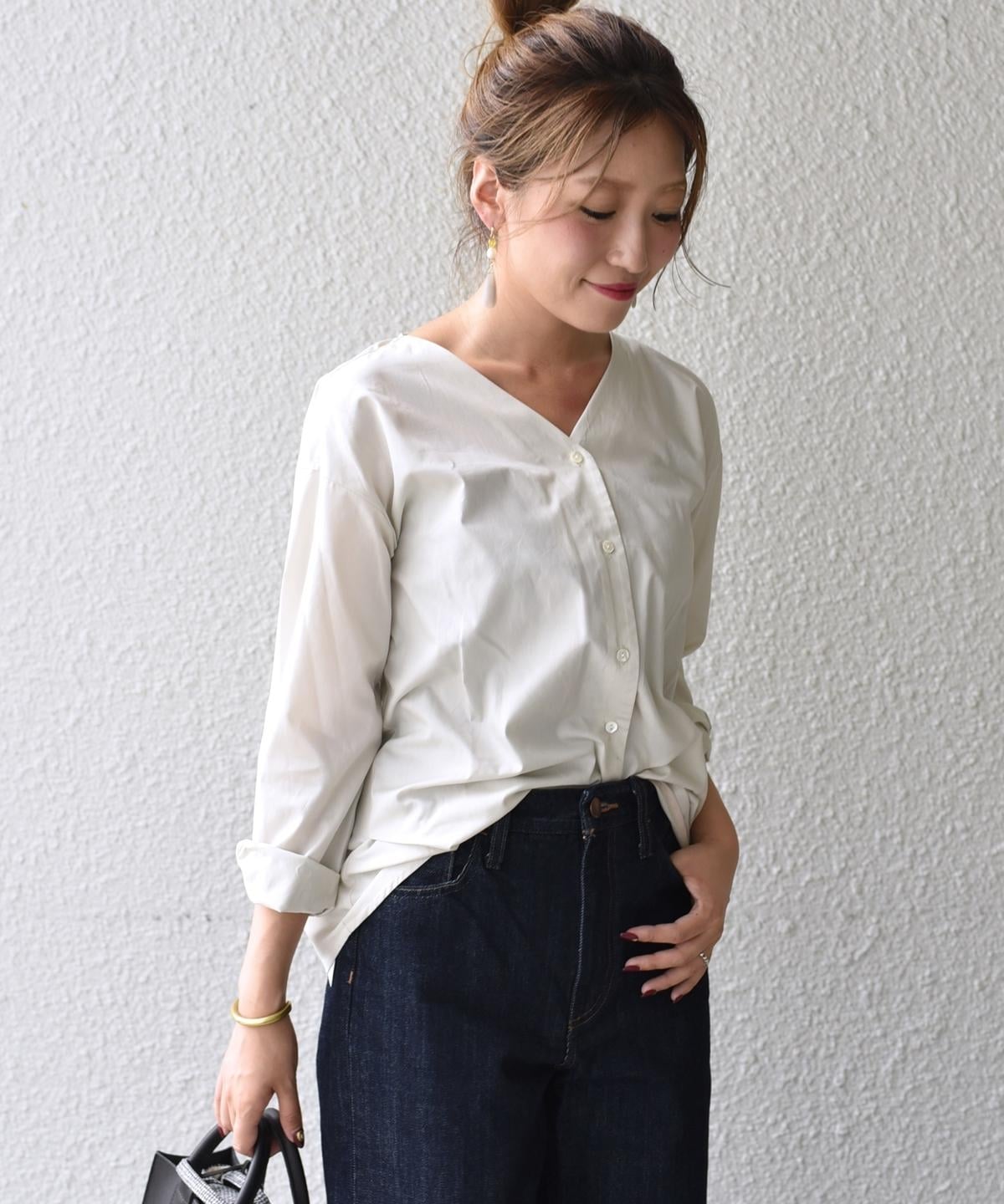 liflattie ships: ブロード Vネック オープン ブラウス