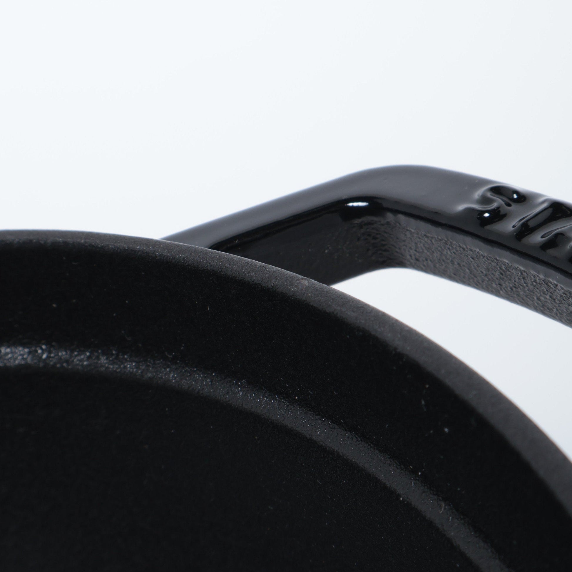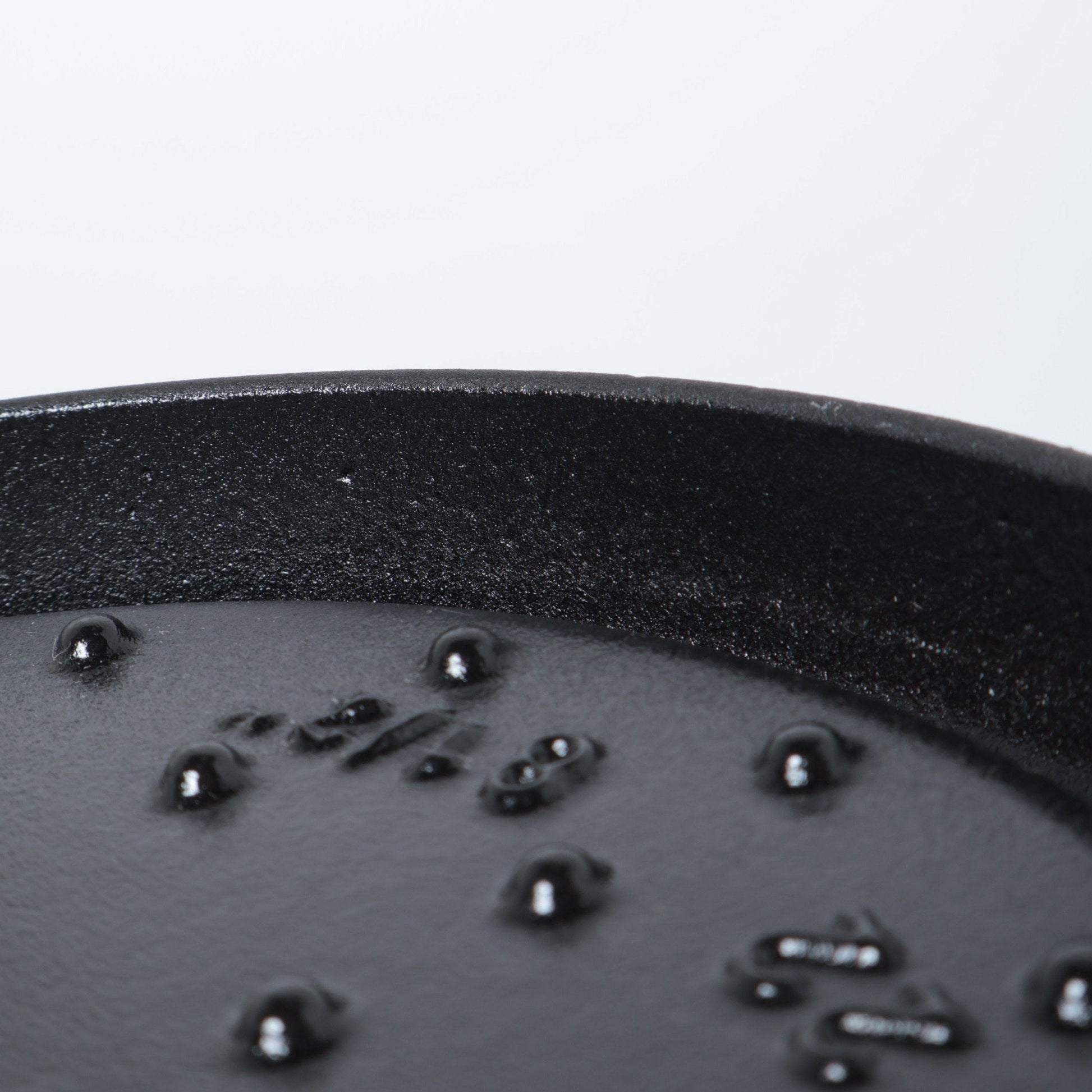 黒マットエマイユ加工:内部はストウブ独自のザラザラ加工。細かな凹凸によって表面積が増えるため油なじみがよく、食材の接点が少なくなり焦げ付きにくくなります。