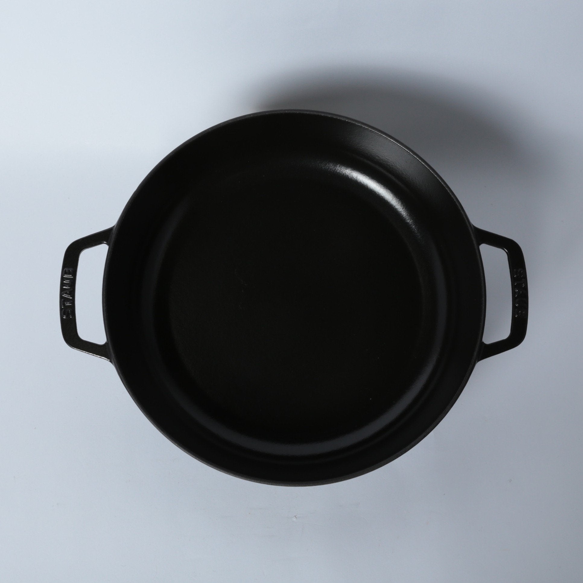黒マットエマイユ加工:ココットの内部はすべてストウブ独自のざらざら加工。細かな凹凸によって表面積が増えるため油なじみがよく、食材の接点が少なくなり焦げ付きにくくなります。