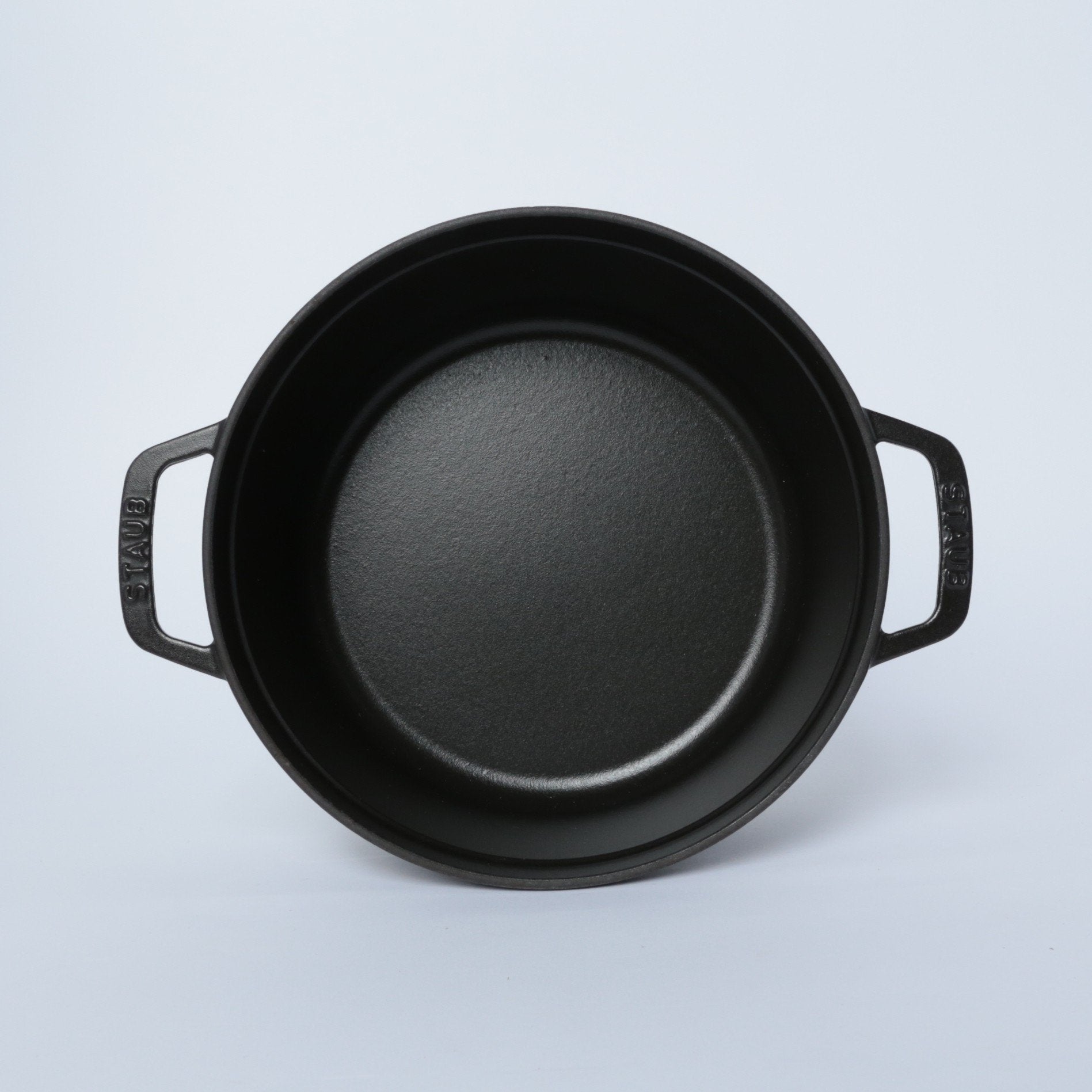 黒マットエマイユ加工:内部はストウブ独自のザラザラ加工。細かな凹凸によって表面積が増えるため油なじみがよく、食材の接点が少なくなり焦げ付きにくくなります。