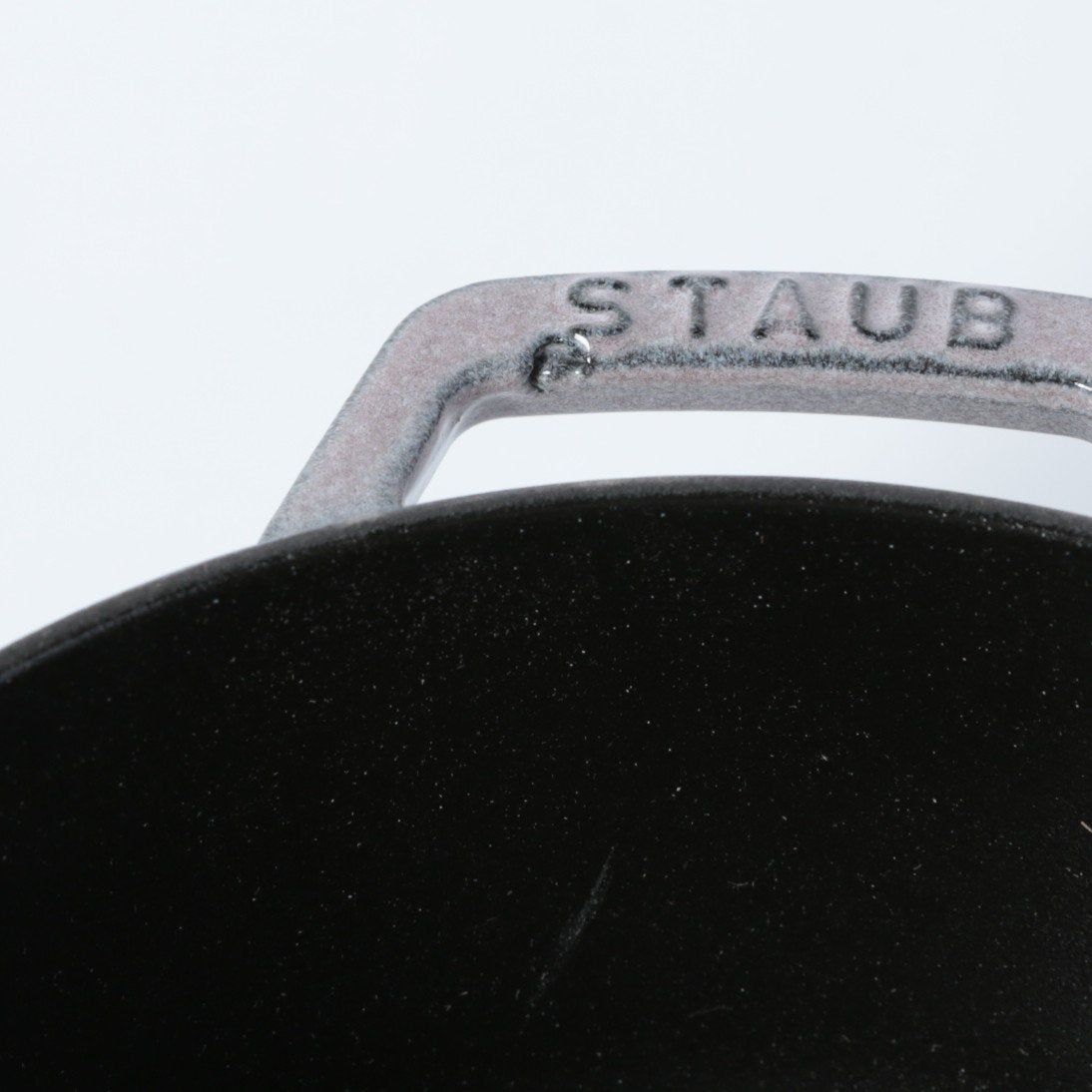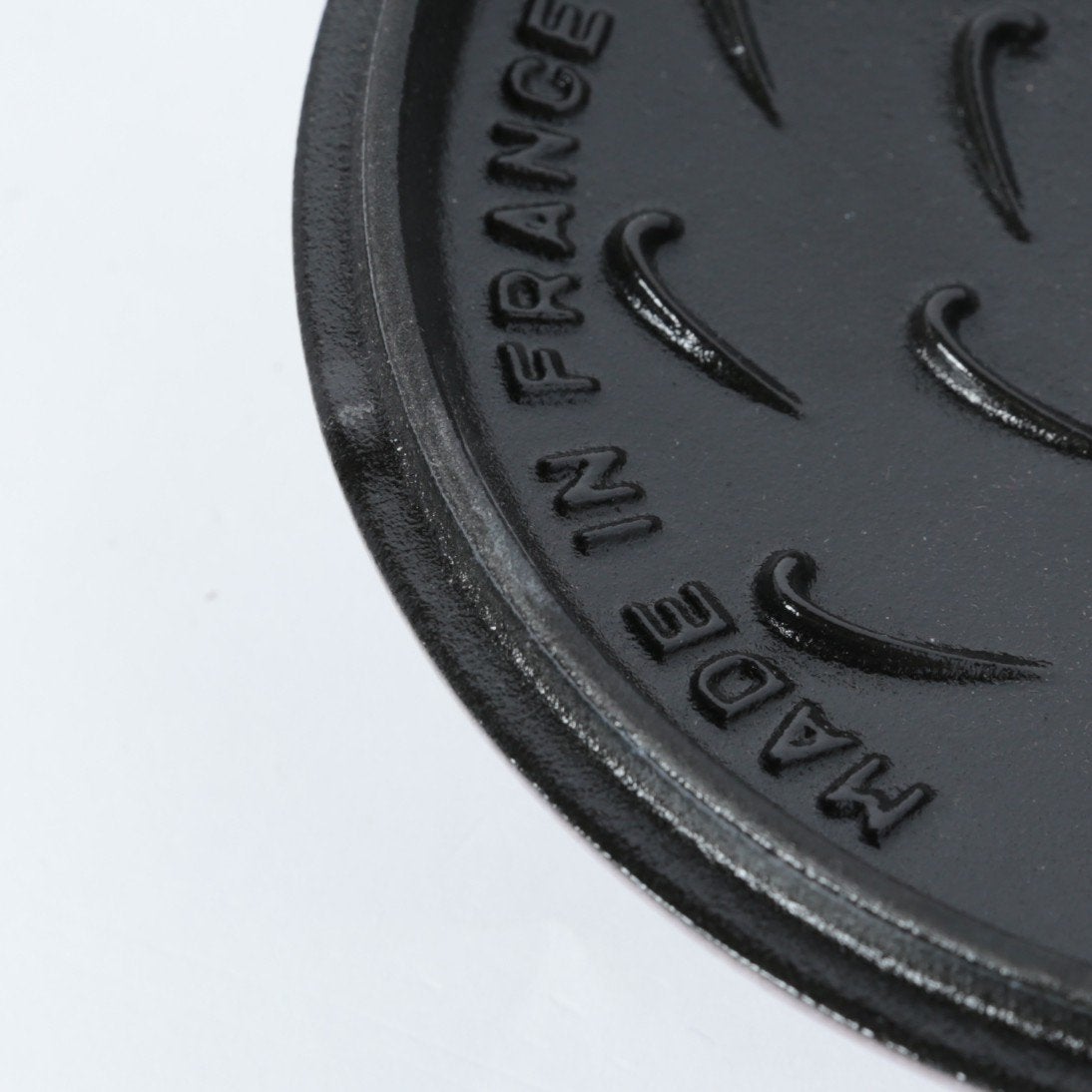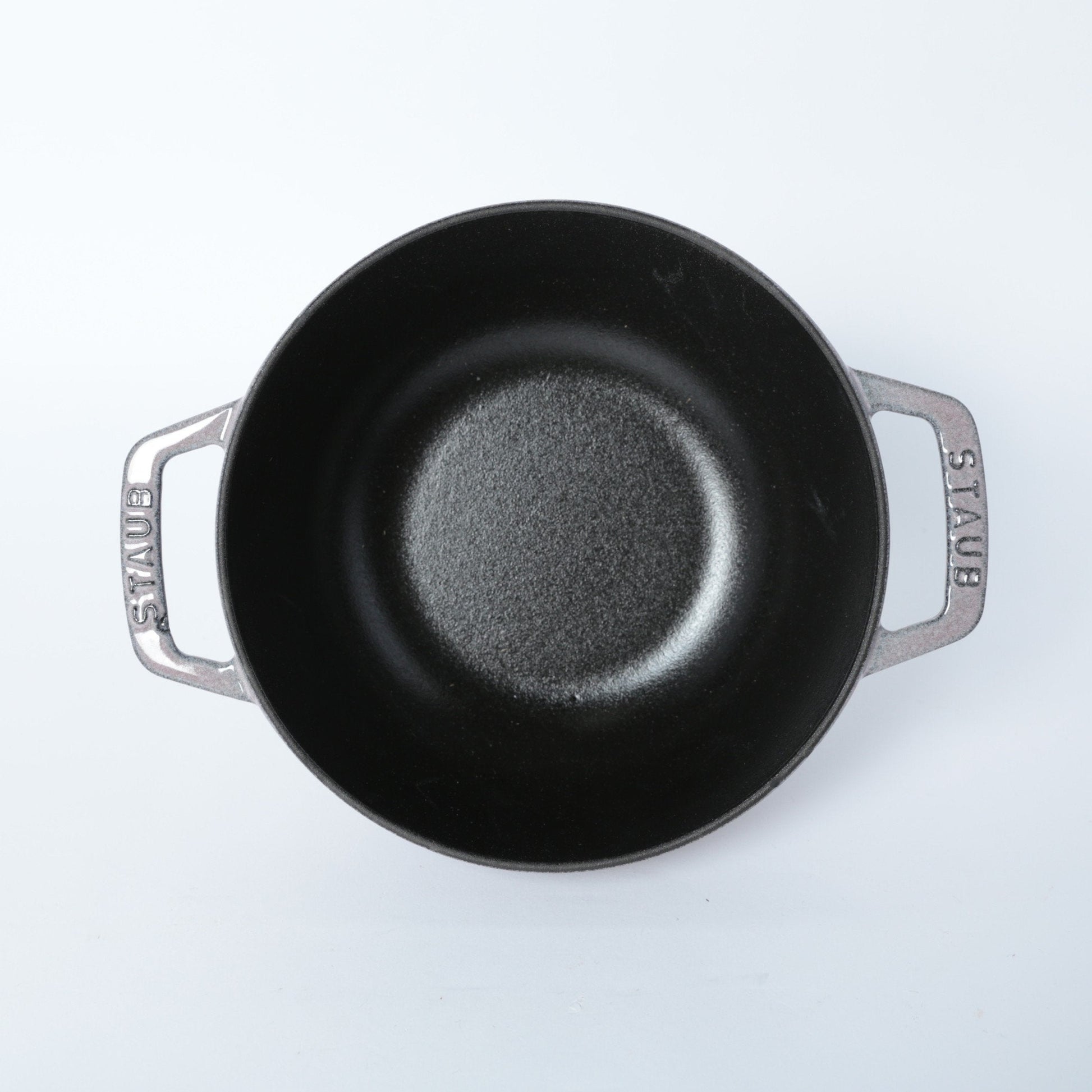 黒マットエマイユ加工:内部はストウブ独自のザラザラ加工。細かな凹凸によって表面積が増えるため油なじみがよく、食材の接点が少なくなり焦げ付きにくくなります。 更に熱伝導・保温性が高くテーブルにそのまま出しても温かいまま料理を楽しめます。