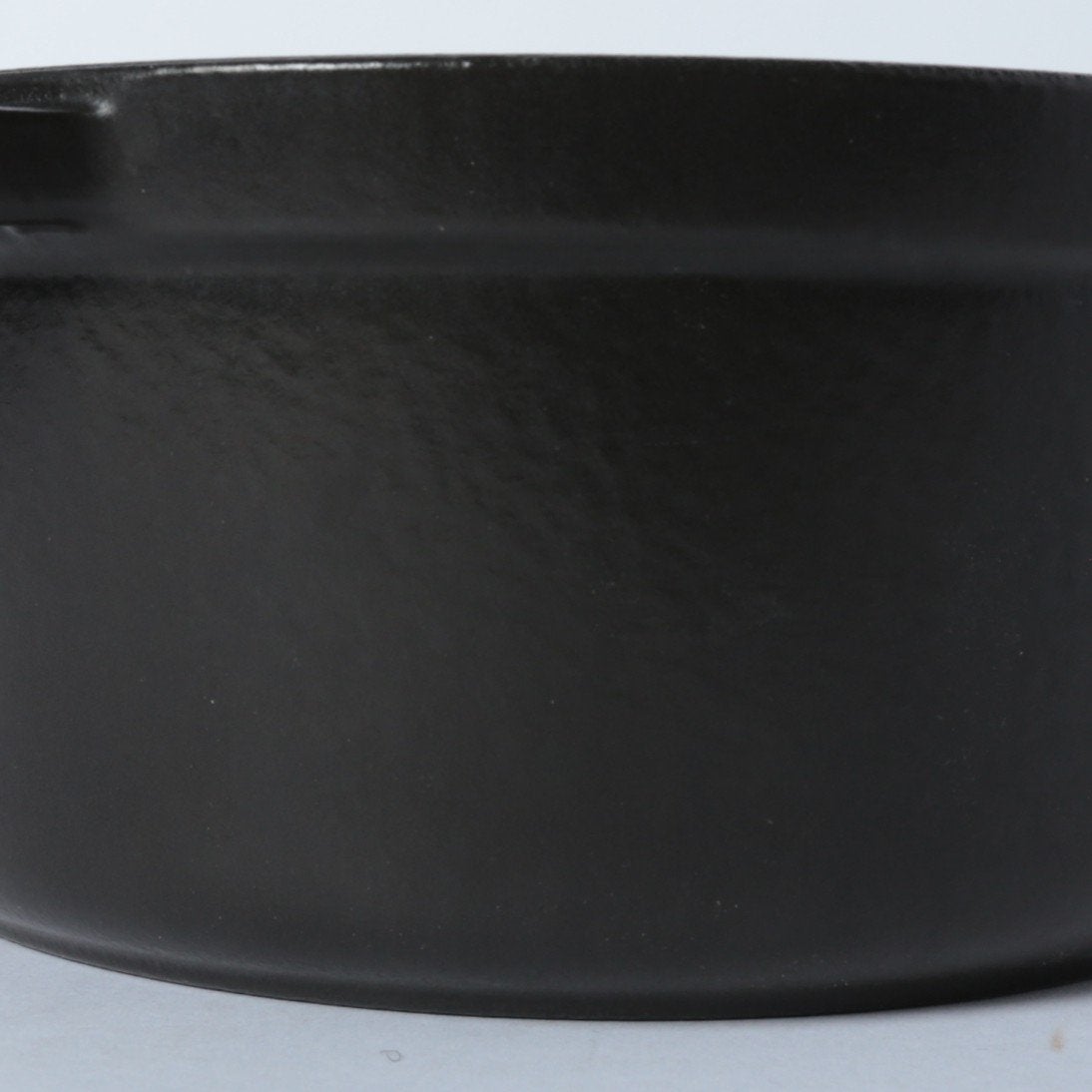 黒マットエマイユ加工:内部はストウブ独自のザラザラ加工。細かな凹凸によって表面積が増えるため油なじみがよく、食材の接点が少なくなり焦げ付きにくくなります。