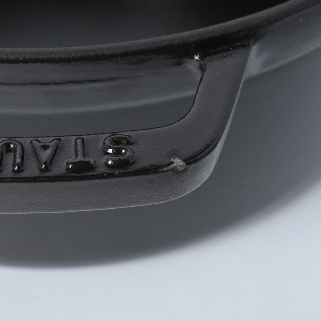 黒マットエマイユ加工:内部はストウブ独自のザラザラ加工。細かな凹凸によって表面積が増えるため油なじみがよく、食材の接点が少なくなり焦げ付きにくくなります。
