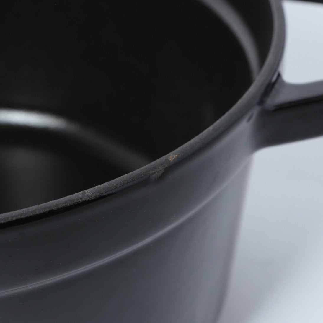 黒マットエマイユ加工:内部はストウブ独自のザラザラ加工。細かな凹凸によって表面積が増えるため油なじみがよく、食材の接点が少なくなり焦げ付きにくくなります。