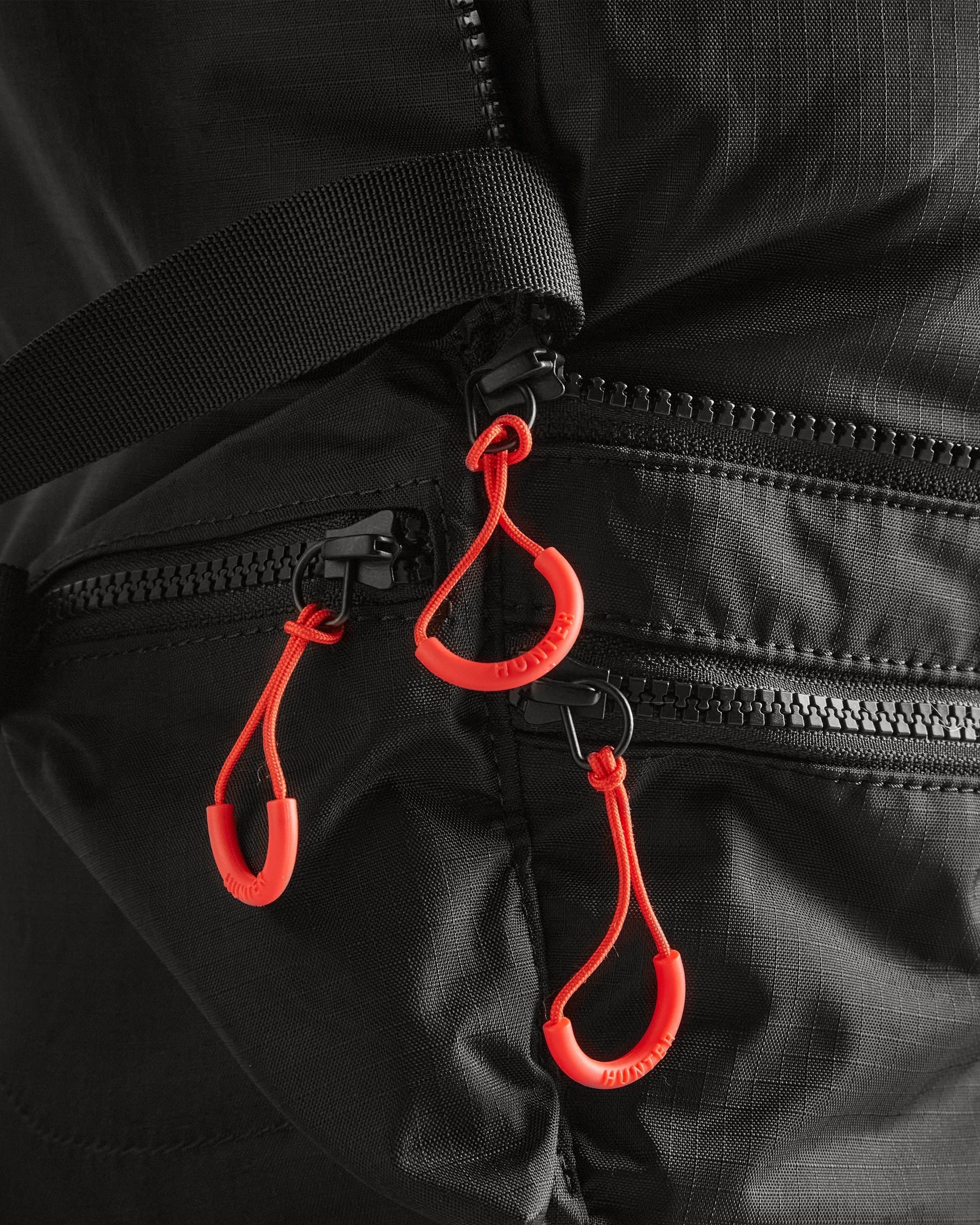 用途の広さを誇るトラベルリップストップバックパックは、クロスボディのバムバッグからバックパックに変身する多機能デザインが特徴的です。バックパック部分の容量は16Lで、長さ調節が可能なストラップ付き。ジッパー付きのサイドポケットには、お出かけや旅行の必需品を簡単に収納可能。リップストップ生地ならではの防水性と耐久性を持ち合わせているため、デイリーユースはもちろんのこと、ハイキングなどのアウトドアにも最適です。