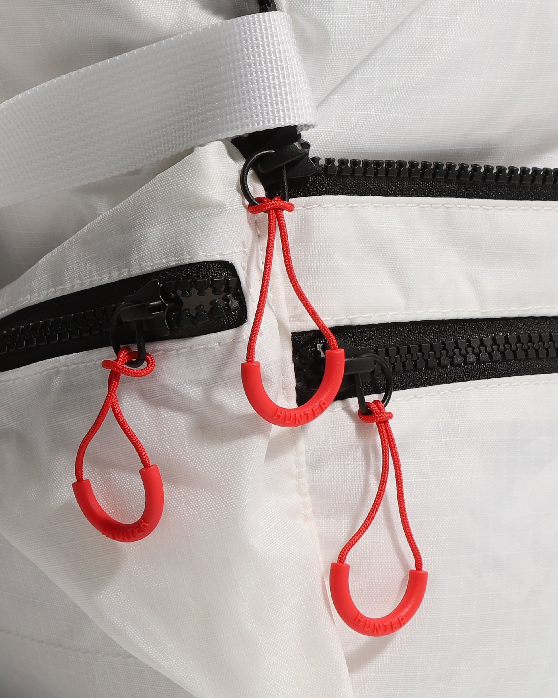 用途の広さを誇るトラベルリップストップバックパックは、クロスボディのバムバッグからバックパックに変身する多機能デザインが特徴的です。バックパック部分の容量は16Lで、長さ調節が可能なストラップ付き。ジッパー付きのサイドポケットには、お出かけや旅行の必需品を簡単に収納可能。リップストップ生地ならではの防水性と耐久性を持ち合わせているため、デイリーユースはもちろんのこと、ハイキングなどのアウトドアにも最適です。
