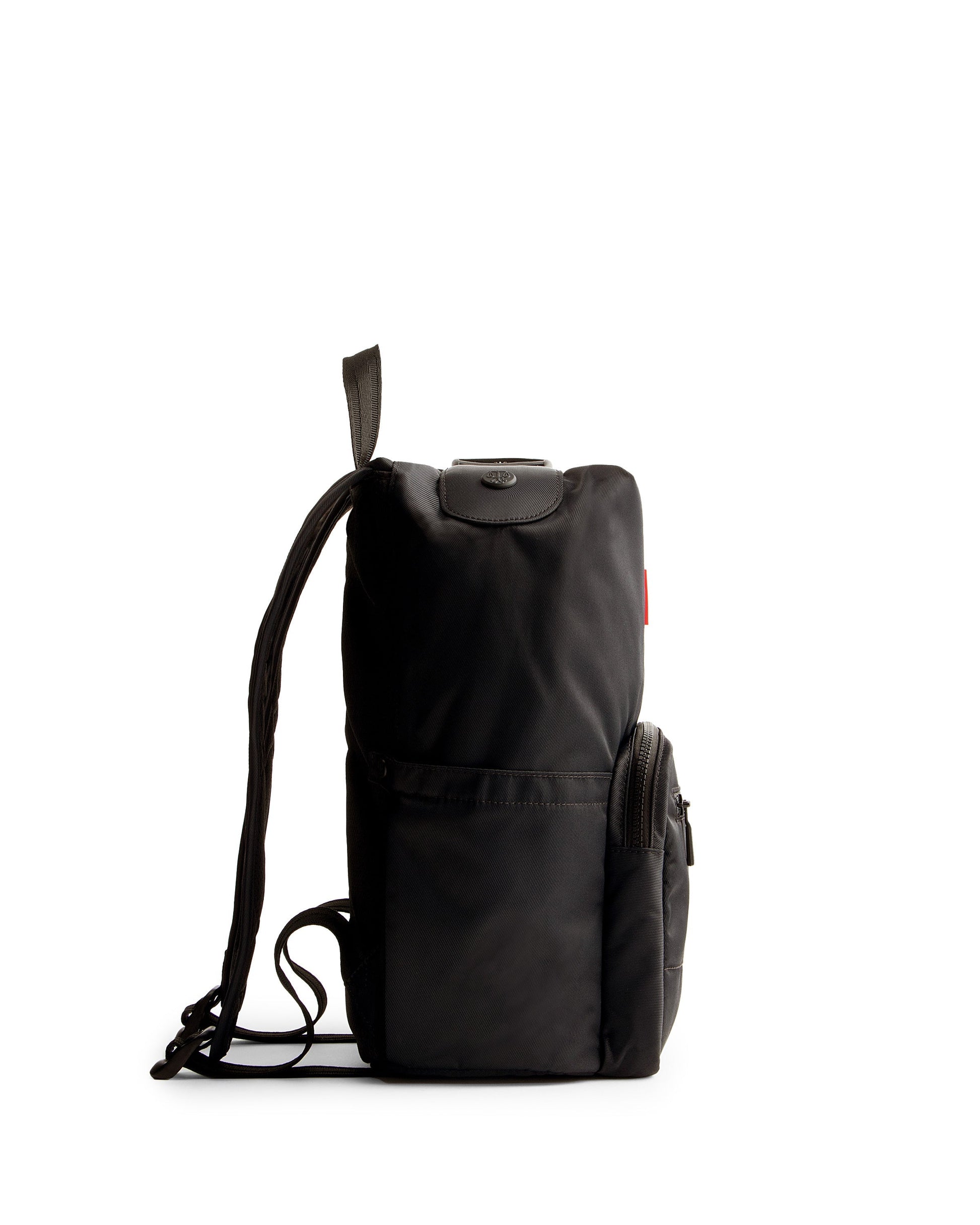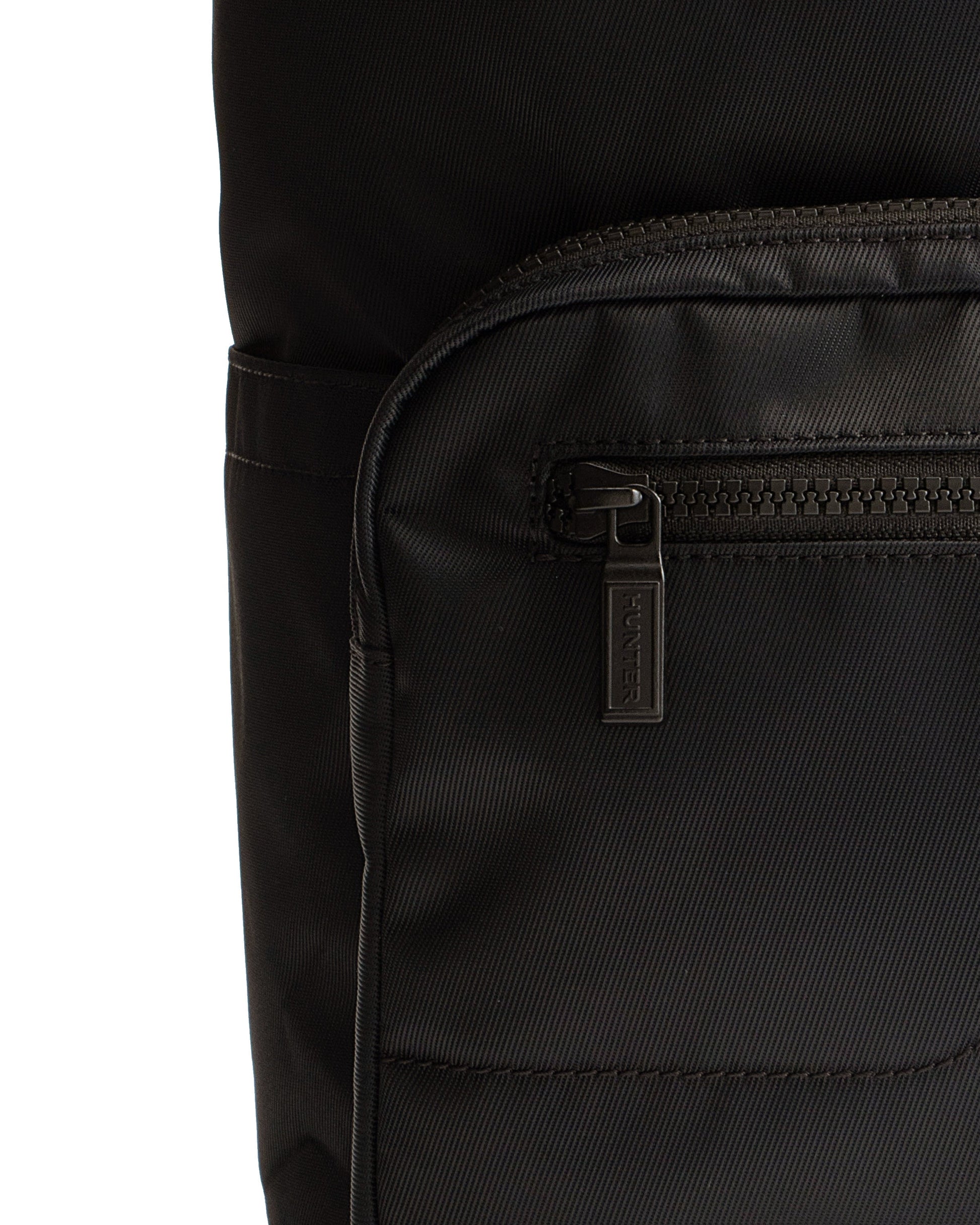 耐水性と簡単にお手入れ可能な機能を兼ね備えたナイロン製のパイオニアミディアムトップクリップバックパック。保護を強化するために、耐水性のある100%リサイクルナイロンの表地と、100%リサイクルジャカードの裏地を使用していて、容量は13L。バッグ前面にはカードやペンを仕分けて収納できるジップ式の多機能ポケットが配置されています。背面にハンターブランドのメッシュ生地を採用し、快適さと通気性をアップ。調整可能なパッド入りストラップ付き。さらに側面には、調節可能なサイドポケットが付いています。