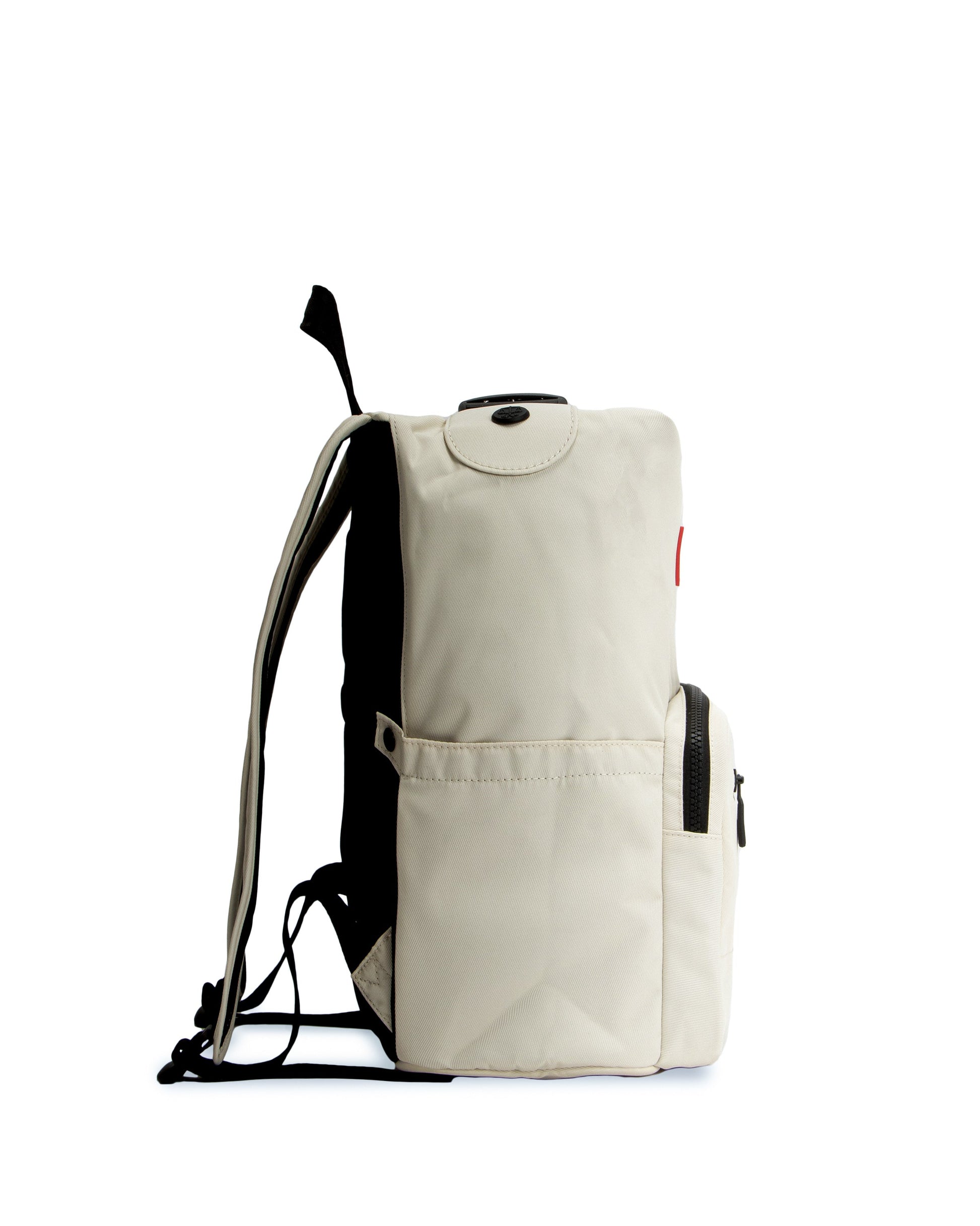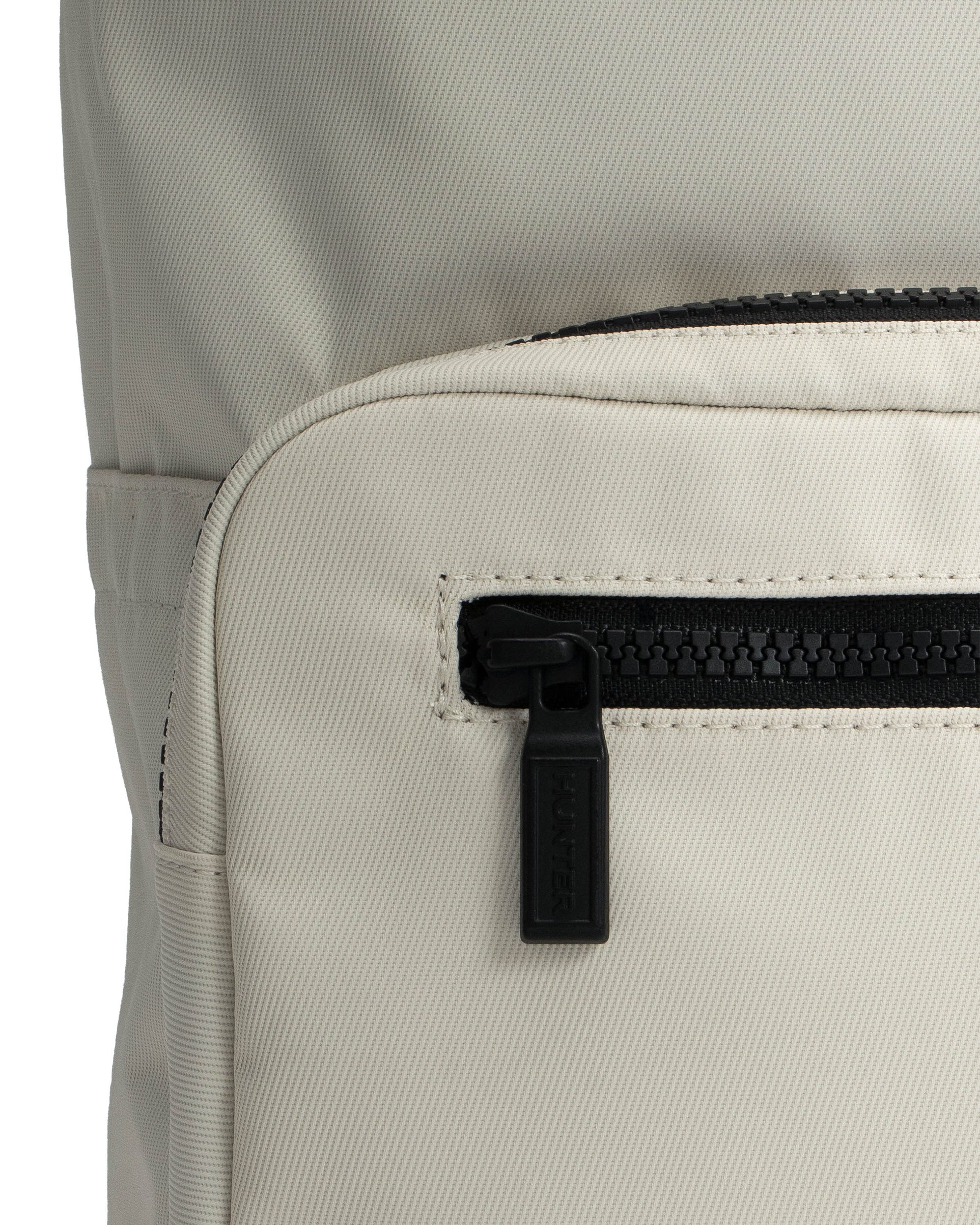 耐水性と簡単にお手入れ可能な機能を兼ね備えたナイロン製のパイオニアミディアムトップクリップバックパック。保護を強化するために、耐水性のある100%リサイクルナイロンの表地と、100%リサイクルジャカードの裏地を使用していて、容量は13L。バッグ前面にはカードやペンを仕分けて収納できるジップ式の多機能ポケットが配置されています。背面にハンターブランドのメッシュ生地を採用し、快適さと通気性をアップ。調整可能なパッド入りストラップ付き。さらに側面には、調節可能なサイドポケットが付いています。