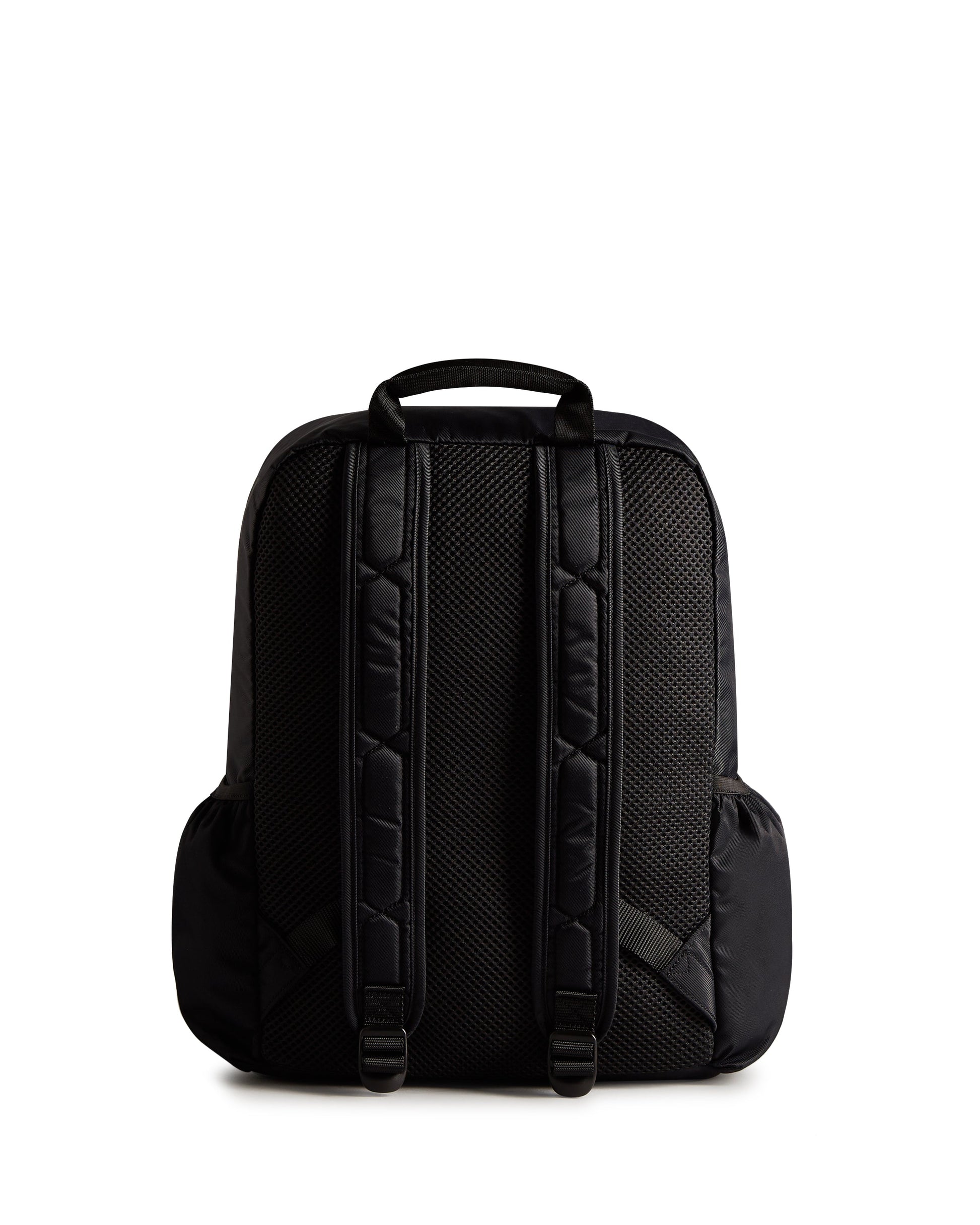 オリジナルナイロンラージバックパックは24.5Lと広々と収納することが可能なバックパック。本体は100%防水ナイロンツイルの外装とポリエステルの裏地を使用し、耐水性のある生地から作られているため雨の日も中身が濡れません。13.5インチのラップトップに適した内部のパッド入りスリーブポケット付き。本体にはパッド入りメッシュバックパネルが付いており着用中の快適さが魅力です。