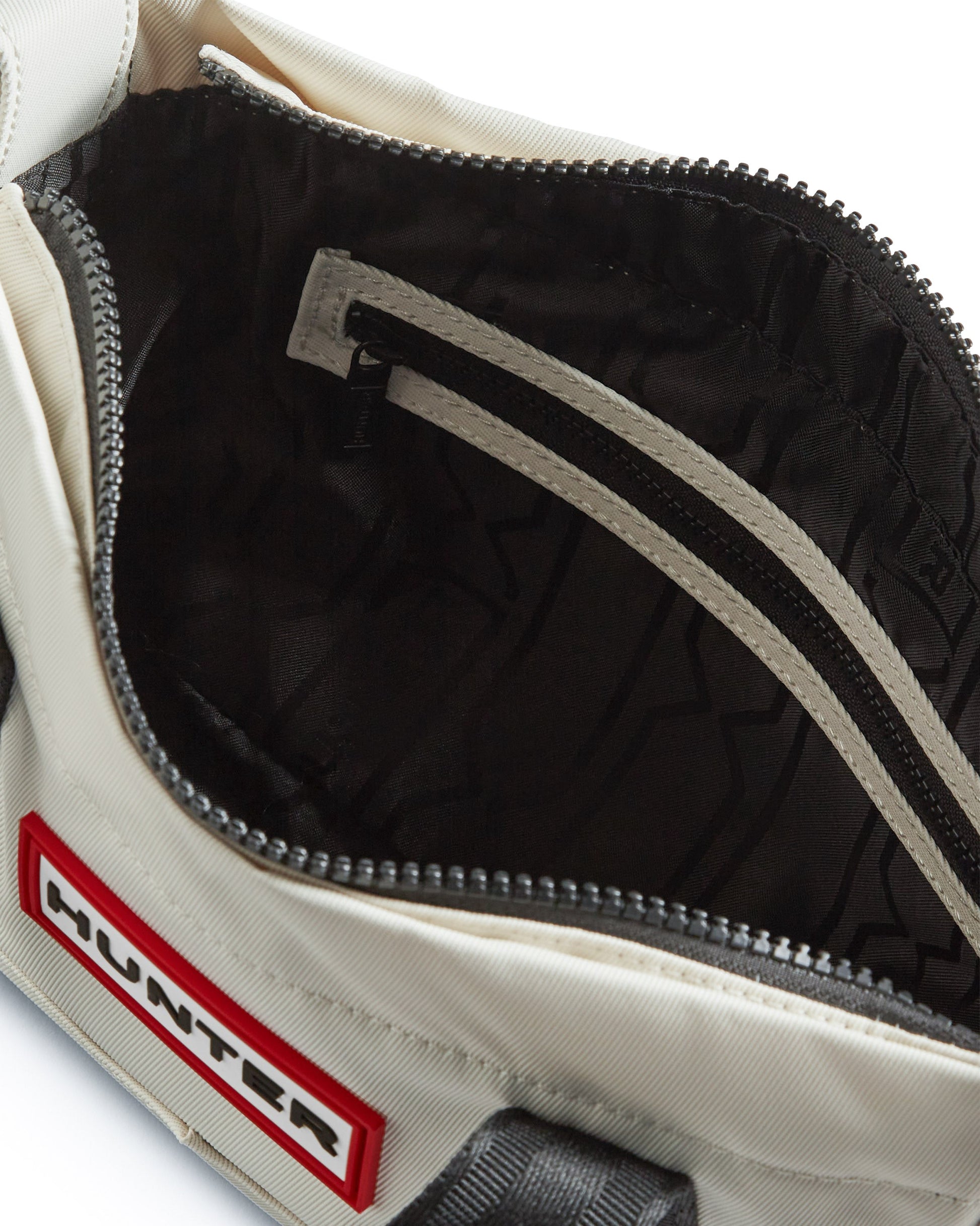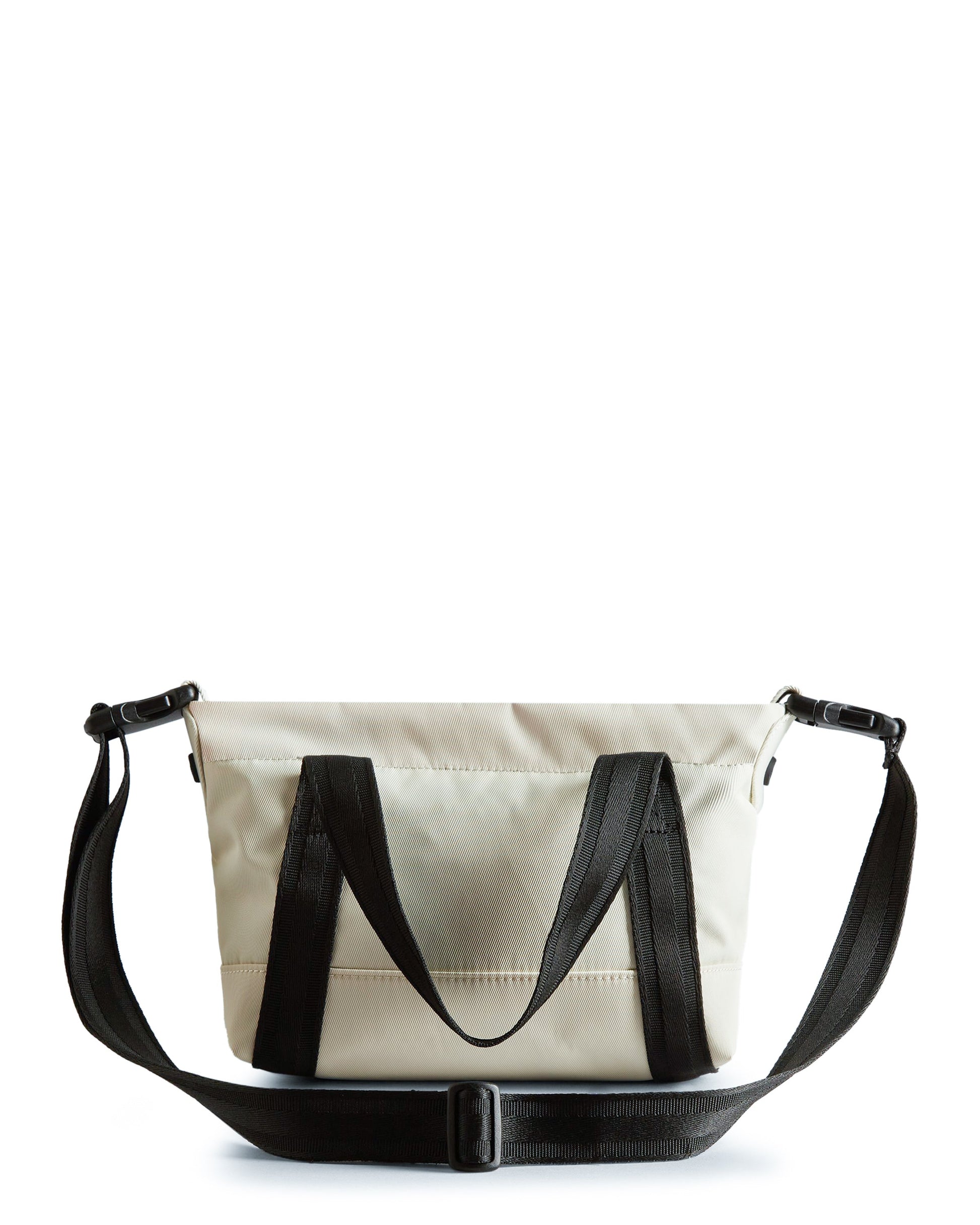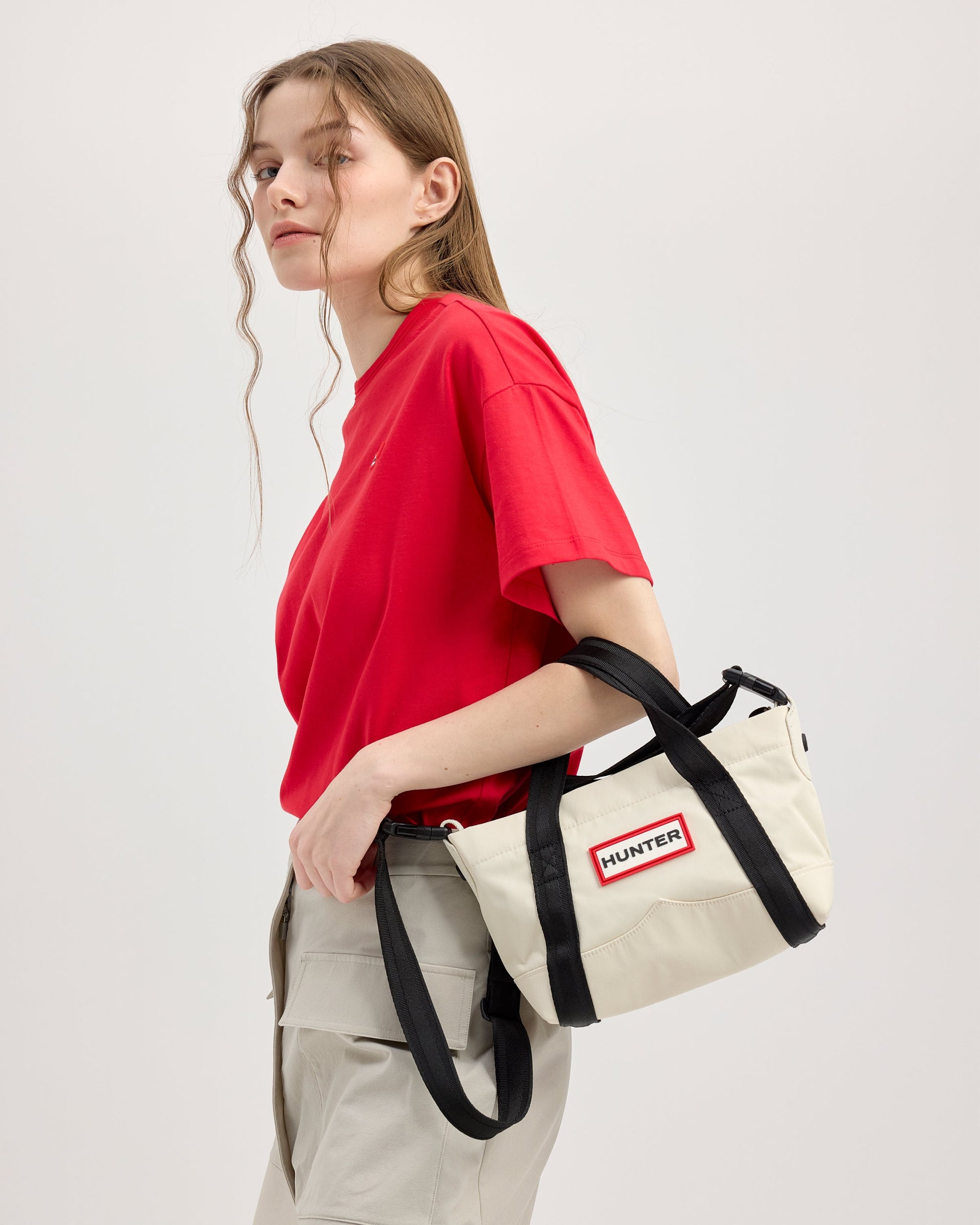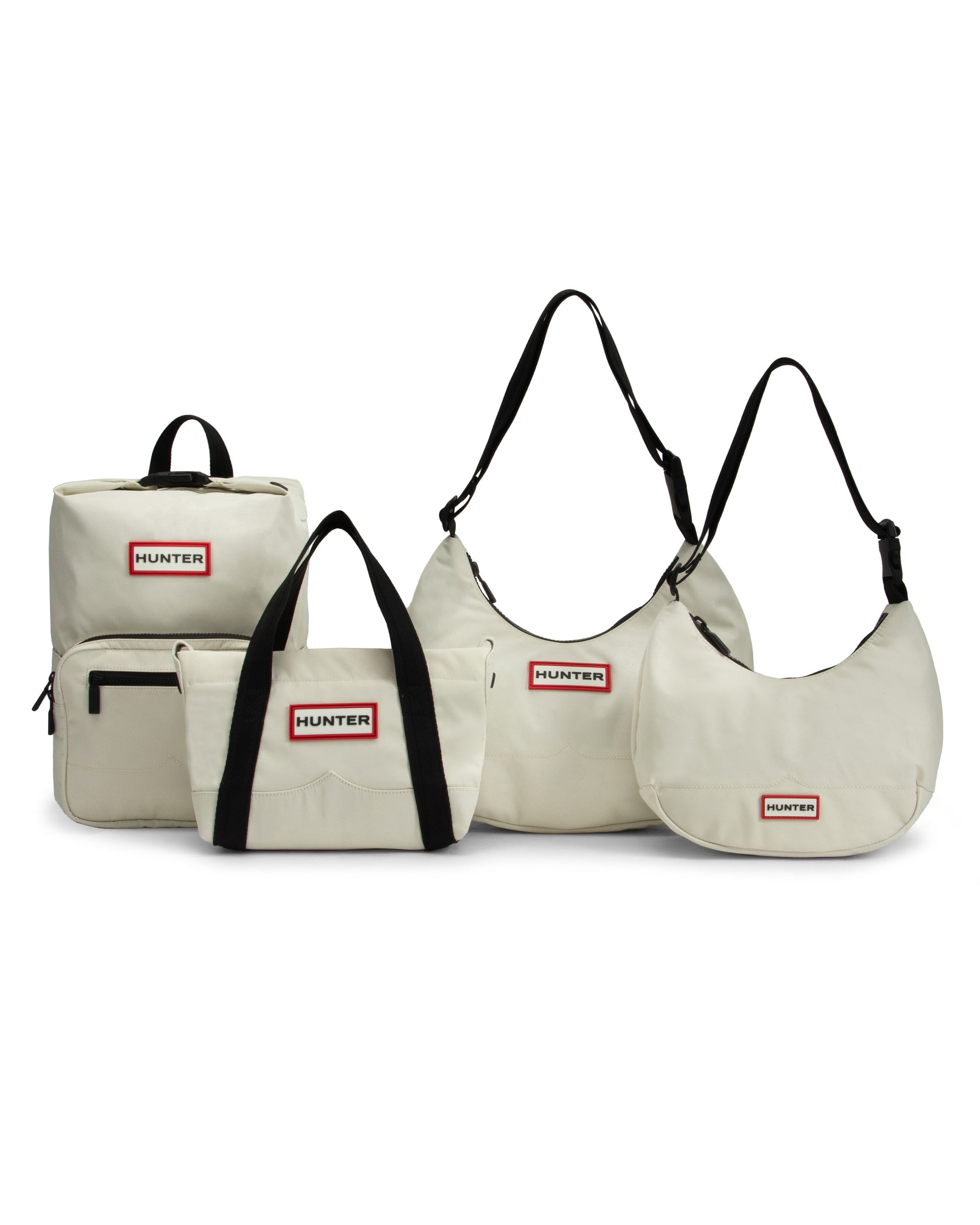 ハンターのナイロンミニトップクリップトートは、耐水性のあるナイロンツイルの表地とリサイクルポリエステルの裏地を使用しています。中身をさらに保護できるような強化されたベースで補完され、日常のハンドバッグとして最適なサイズに仕上がっています。バッグの内側にはポケットがあり、貴重品などの大切な所持品を持ち運べるので、いざという時にスムーズに取り出すことが可能です。ストラップは取り外しと長さ調整が可能で、状況に応じて様々な方法でご使用いただけます。