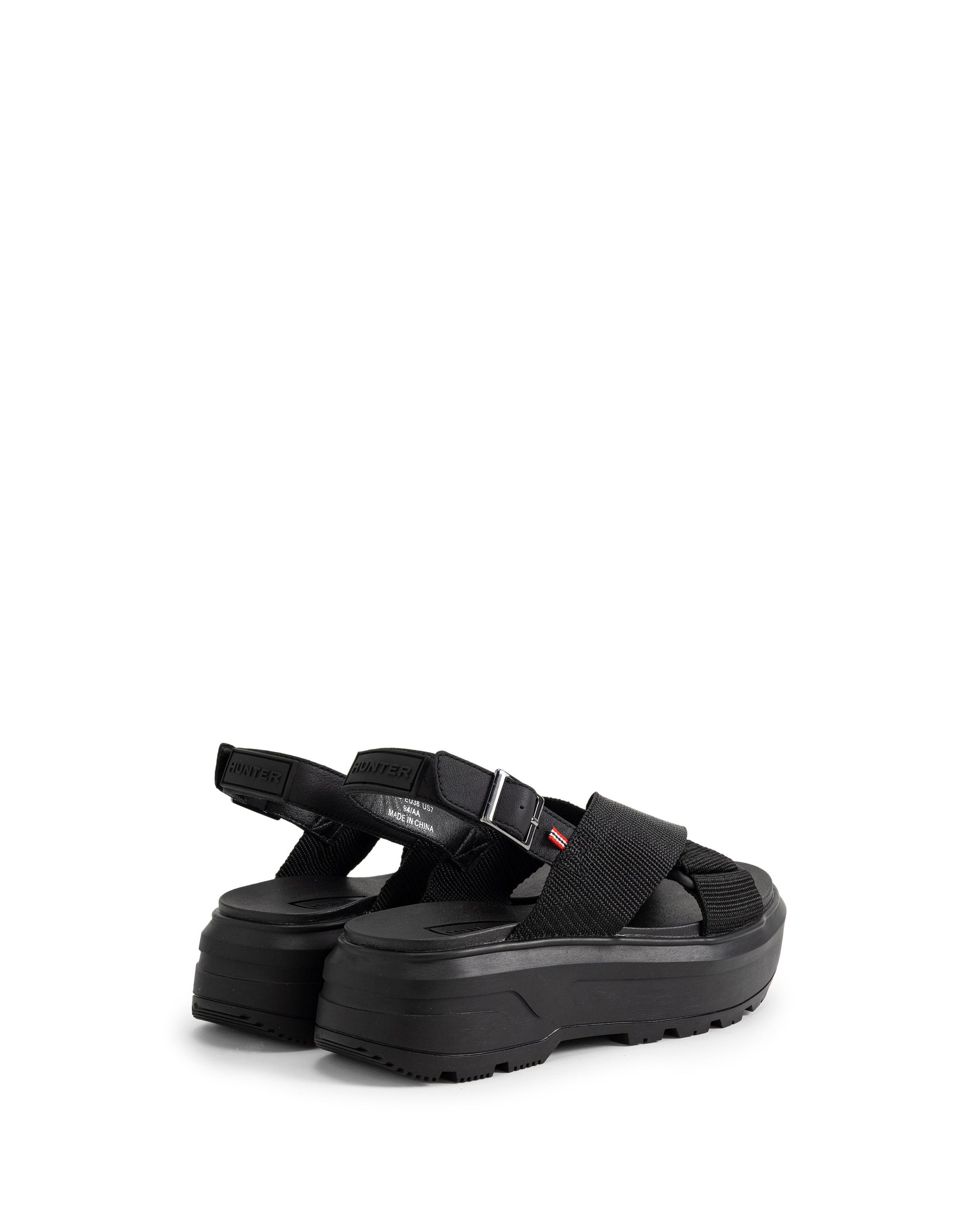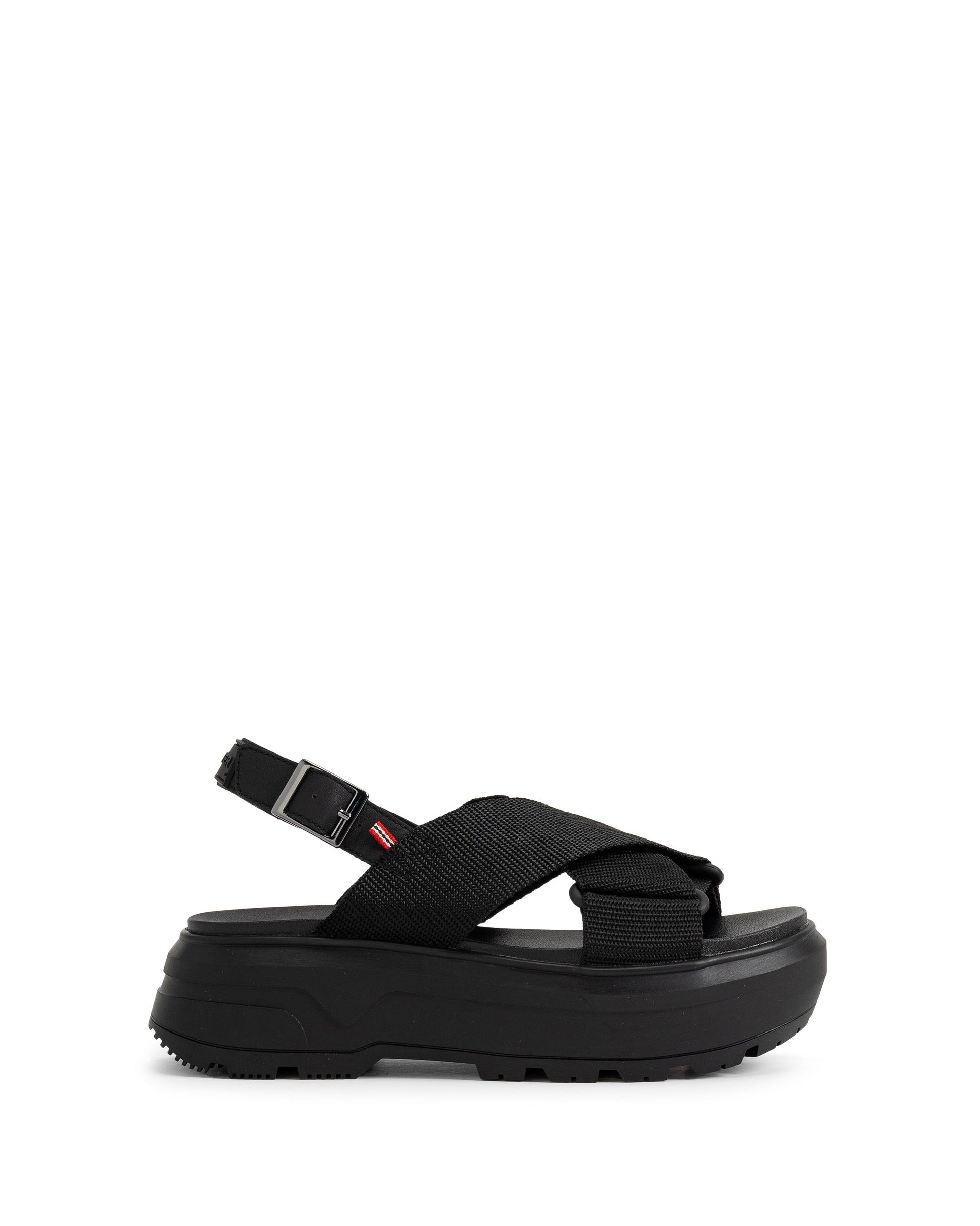SS25シーズン、ハンターから新しいサンダルシリーズが登場しました。大胆なウェビングストラップが新鮮な印象を与える、ユニセックス リベル ウェビング クロスオーバー サンダルは、シティへのお出かけ、フェスなどのレジャー、旅先でも活躍します。チャンキーなアウトソールは軽量で、ソックスと合わせれば、春~秋にかけて長く履けるのもポイント。レザーを使用したバックストラップは調節が可能。ハンターのトリコロールカラータグ付き。
