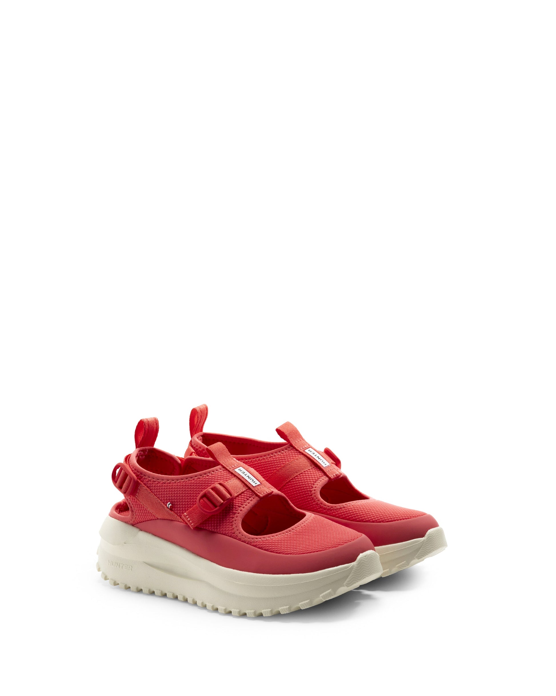 通気性の良いメッシュアッパーと、軽量でクッション性に優れたアウトソールを組み合わせ、究極の履き心地を実現したユニセックスサンダルです。夏の水辺のアクティビティや、軽いハイキング、街へのお出かけにも最適。ソックスと合わせれば春~秋にかけてスニーカーのように履くことも可能です。アッパーと、かかと部分のストラップでお好みのフィット感に調節可能です。アッパーにハンターロゴ、サイドにはブランドトリコロールカラーのタグがあしらわれています。