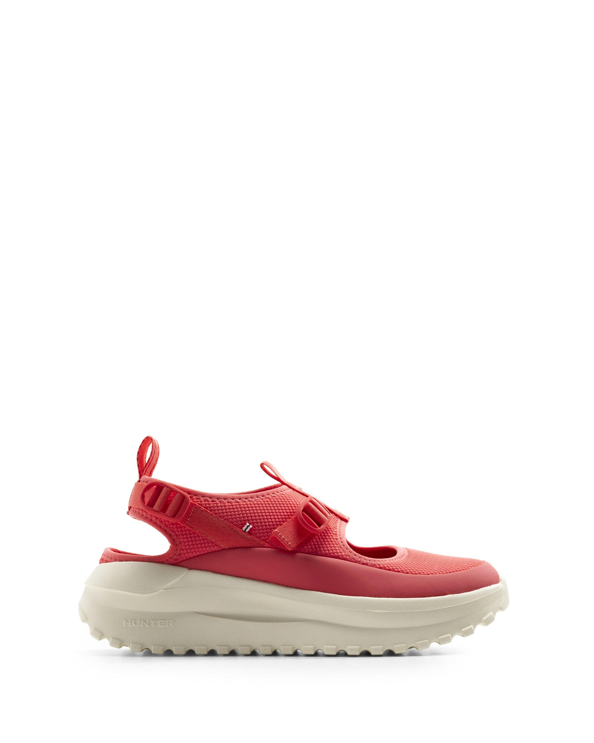 通気性の良いメッシュアッパーと、軽量でクッション性に優れたアウトソールを組み合わせ、究極の履き心地を実現したユニセックスサンダルです。夏の水辺のアクティビティや、軽いハイキング、街へのお出かけにも最適。ソックスと合わせれば春~秋にかけてスニーカーのように履くことも可能です。アッパーと、かかと部分のストラップでお好みのフィット感に調節可能です。アッパーにハンターロゴ、サイドにはブランドトリコロールカラーのタグがあしらわれています。