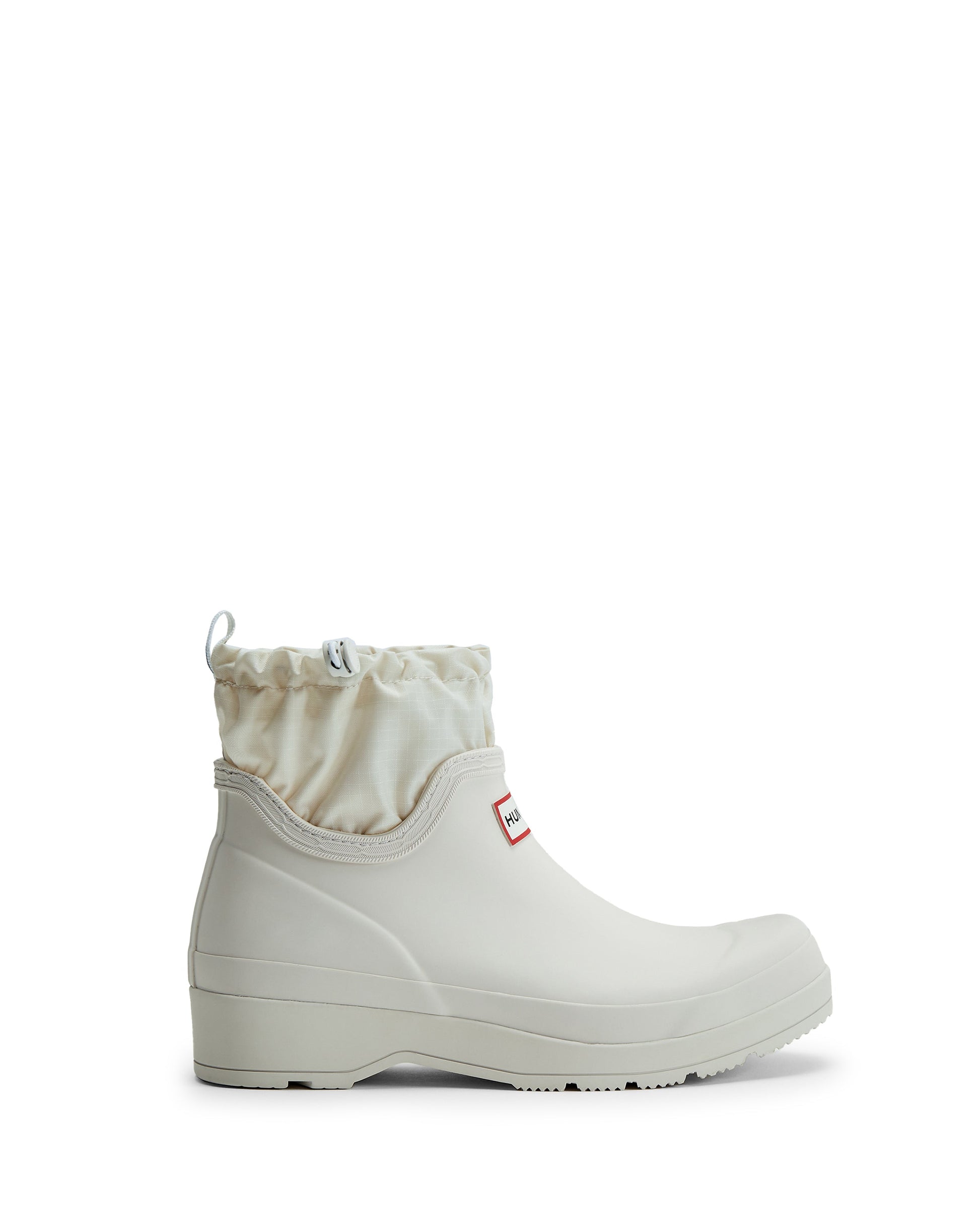 ベストセラーのプレイブーツが、春夏用にアップデートされました。リサイクルリップストップナイロンメッシュのアッパーと、巾着式のトグルクロージャーで持ち運びが簡単になり夏の旅行にぴったりのブーツです。足首にかかる丈のユニセックスなシルエットで、フラットなソールと角度のついたブロックヒールが快適な履き心地を実現。最高品質の110%防水天然ゴムを使用し、リサイクル素材の裏地を施しています。