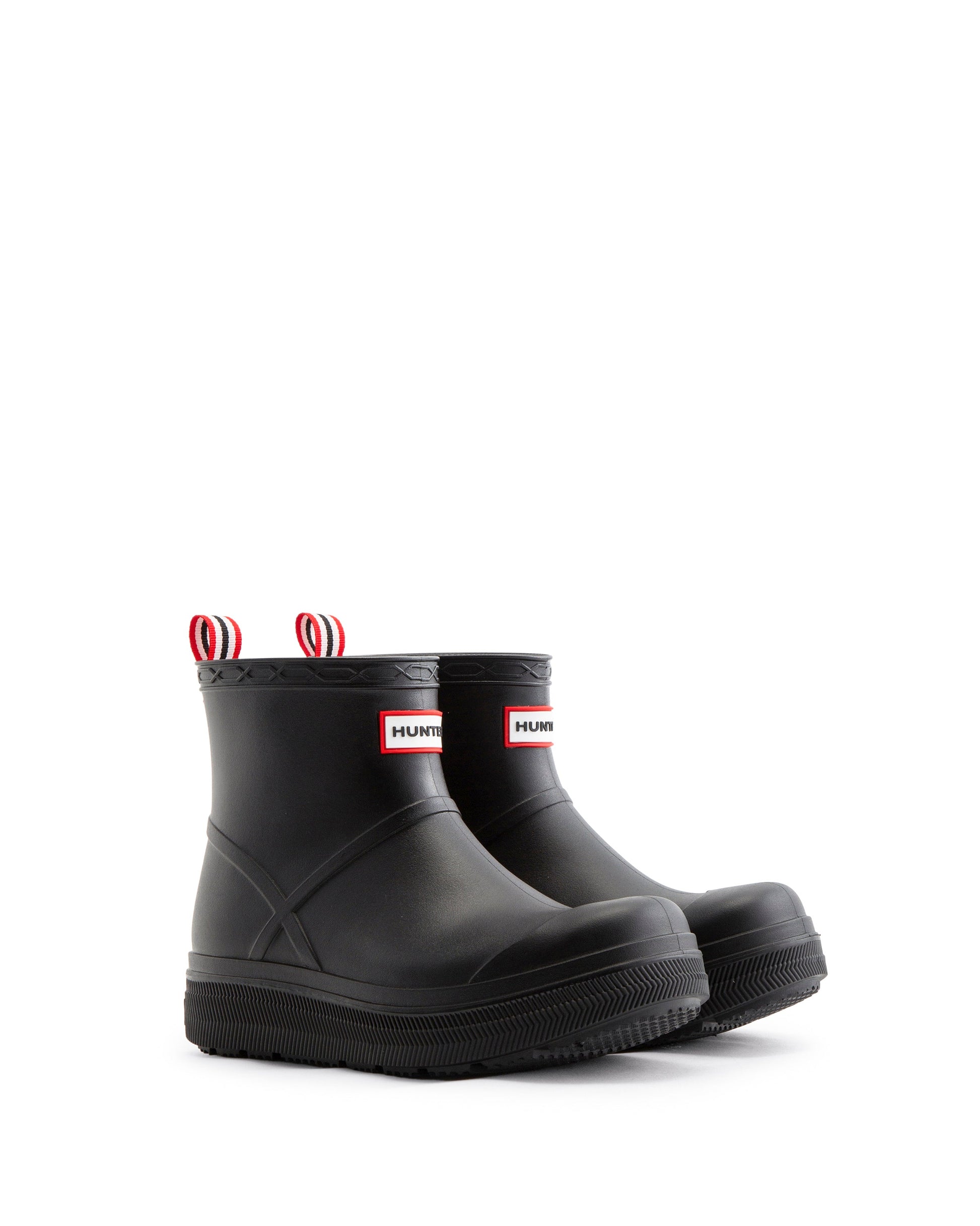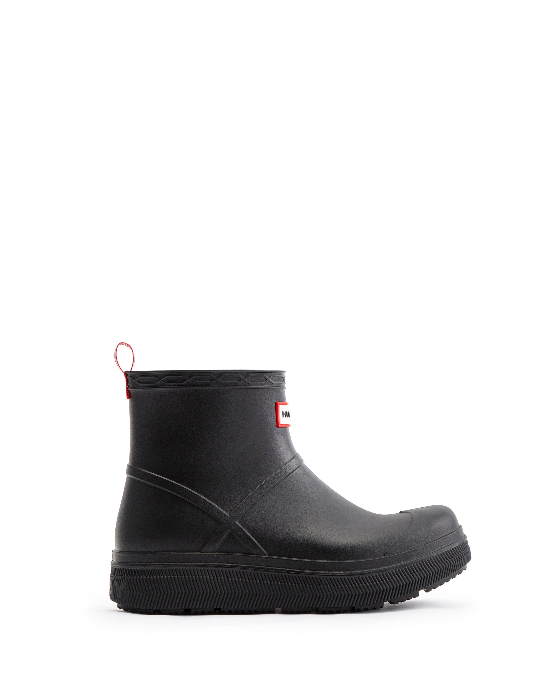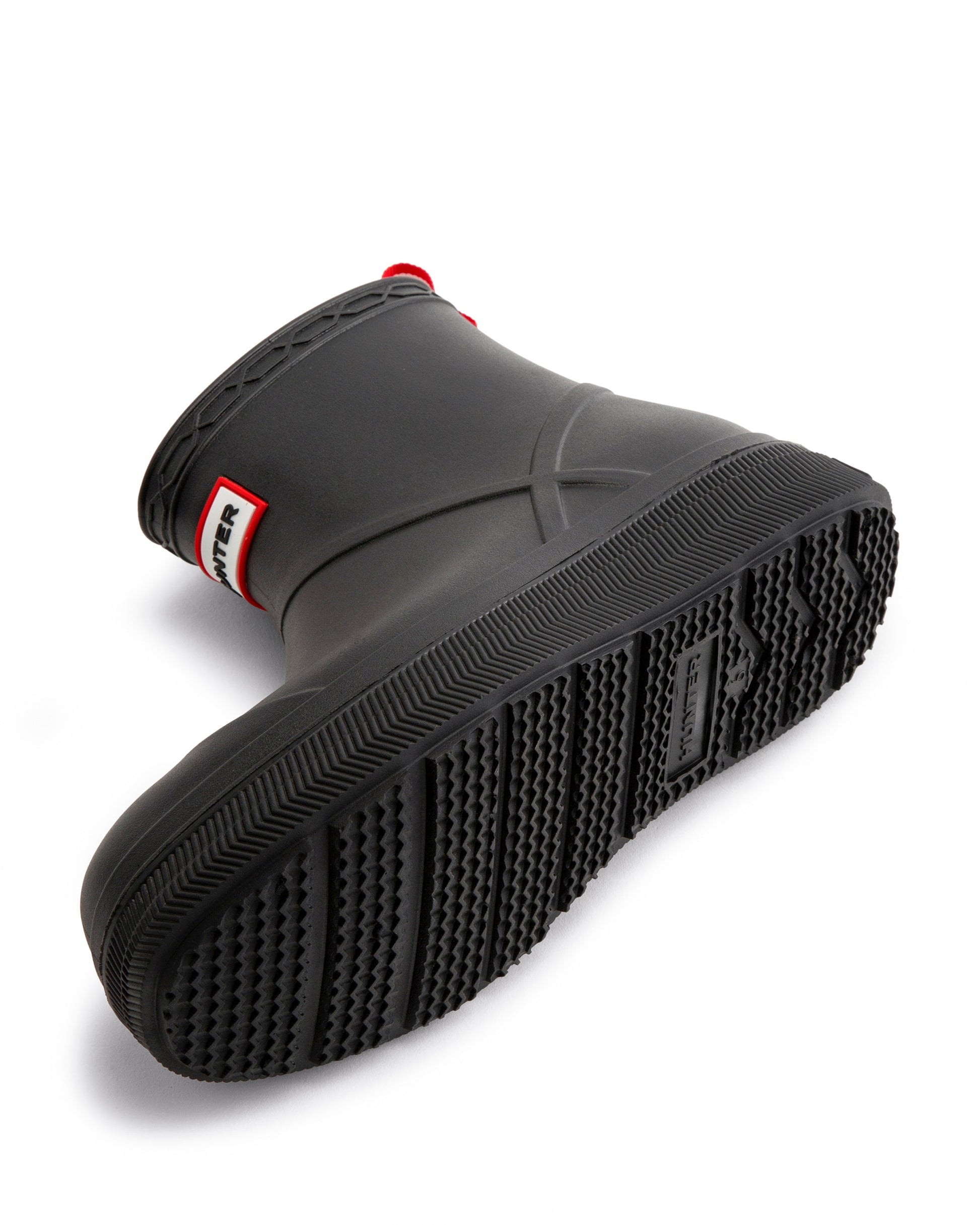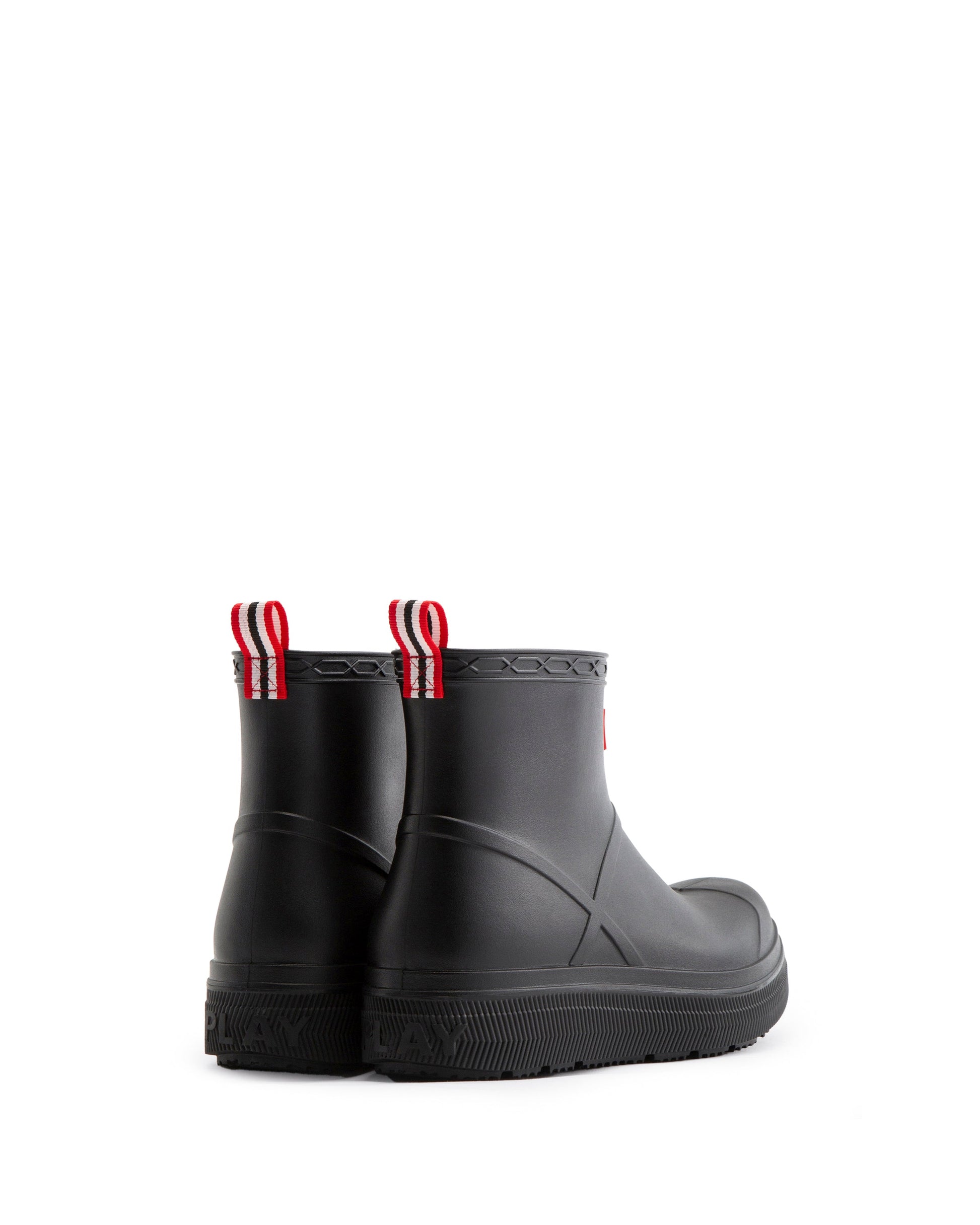 ハンターのベストセラー「プレイブーツ」が新しく生まれ変わってデビューします。この新しいプレイモールデットブーツは、人気のプレイブーツのディテールはそのままに、PVC素材であることそして豊富なカラーバリエーションが大きな特徴です。ソールにはPLAYのエンボス加工が施されています。100%防水で、足首の上まですっぽりと覆うフラットなプラットフォームソールは、脱ぎ履きもし易く快適な履き心地を提供します。雨の日だけでなく、フェスなどのアウトドアシーンにも大活躍のレインブーツです。背面には、着脱に便利なプルタブが付いています。