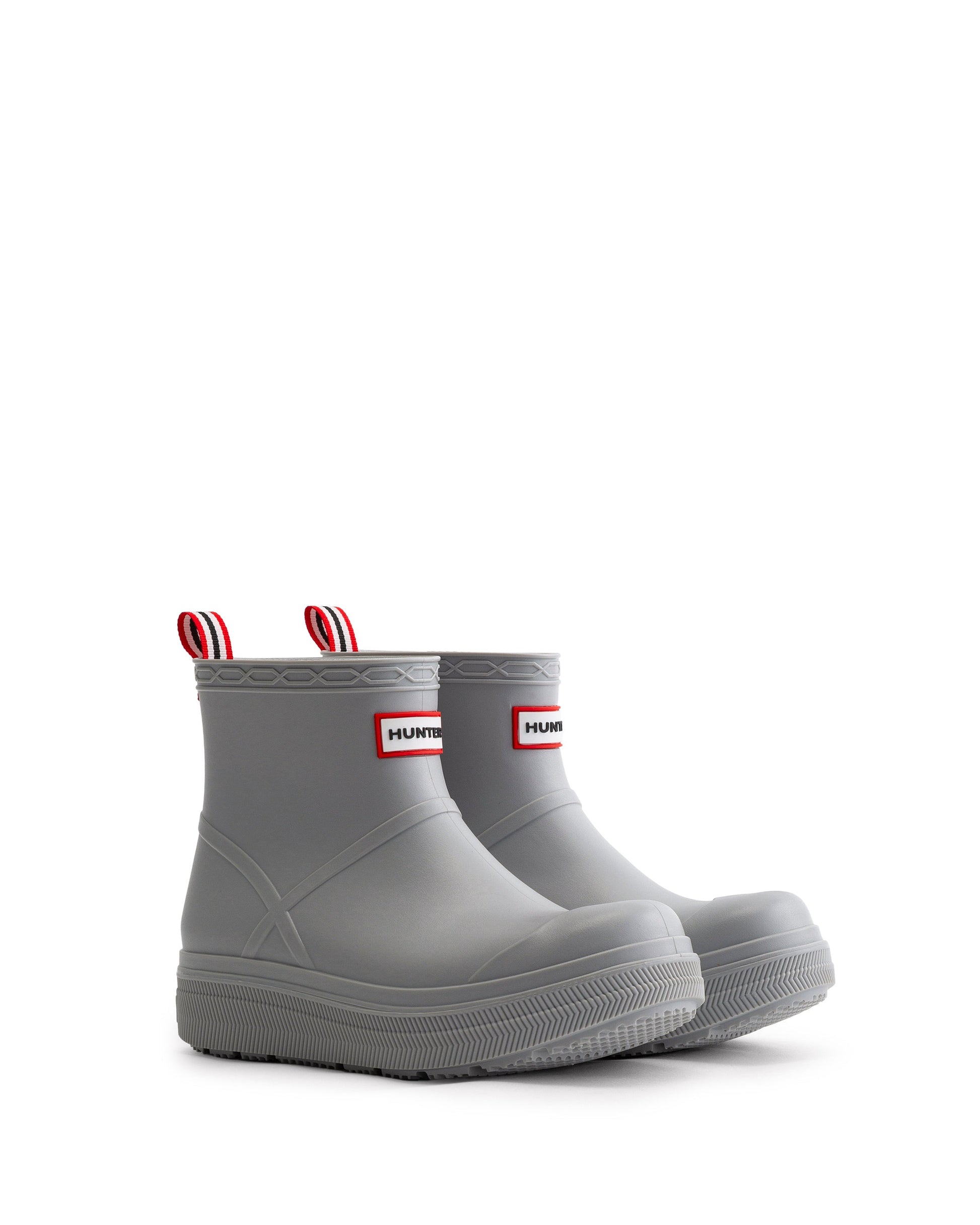 ハンターのベストセラー「プレイブーツ」が新しく生まれ変わってデビューします。この新しいプレイモールデットブーツは、人気のプレイブーツのディテールはそのままに、PVC素材であることそして豊富なカラーバリエーションが大きな特徴です。ソールにはPLAYのエンボス加工が施されています。100%防水で、足首の上まですっぽりと覆うフラットなプラットフォームソールは、脱ぎ履きもし易く快適な履き心地を提供します。雨の日だけでなく、フェスなどのアウトドアシーンにも大活躍のレインブーツです。背面には、着脱に便利なプルタブが付いています。
