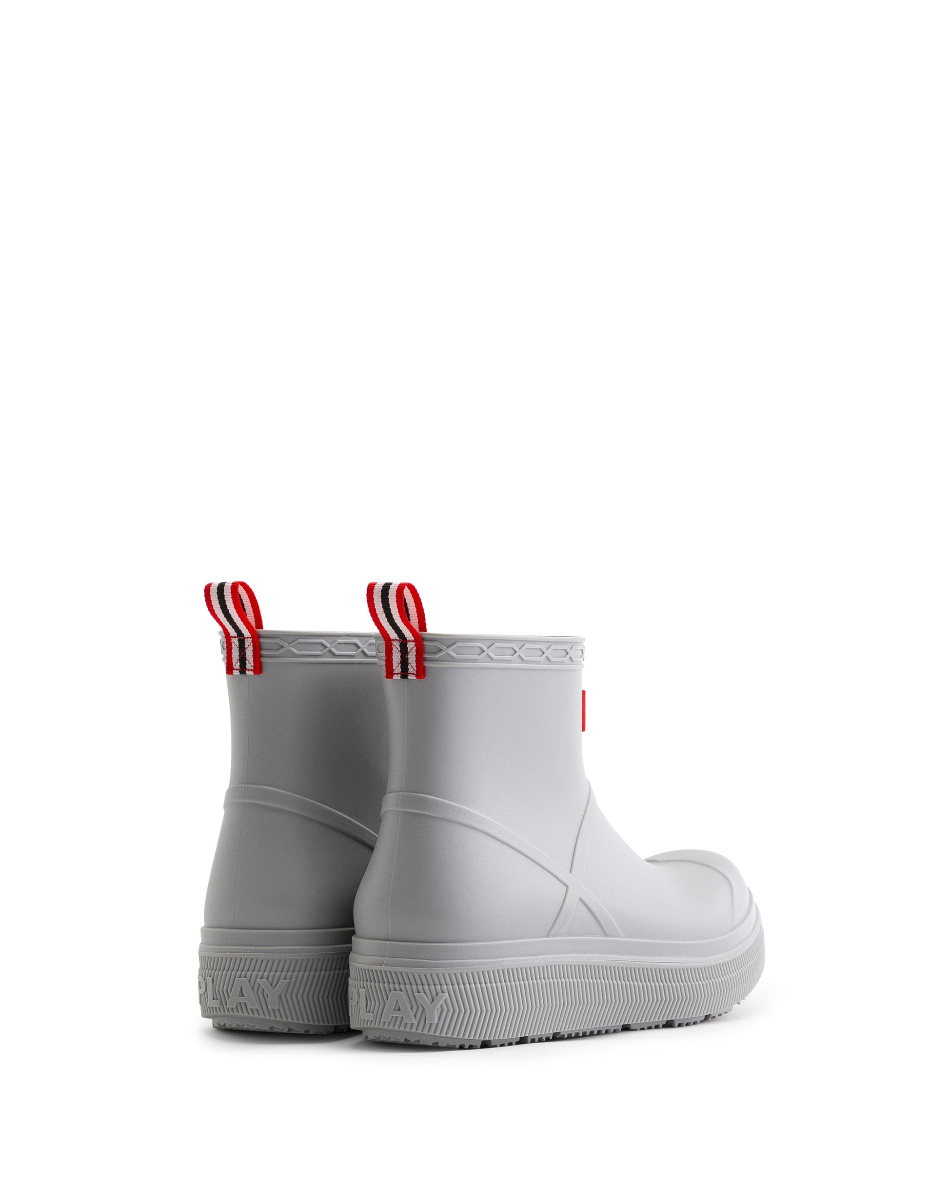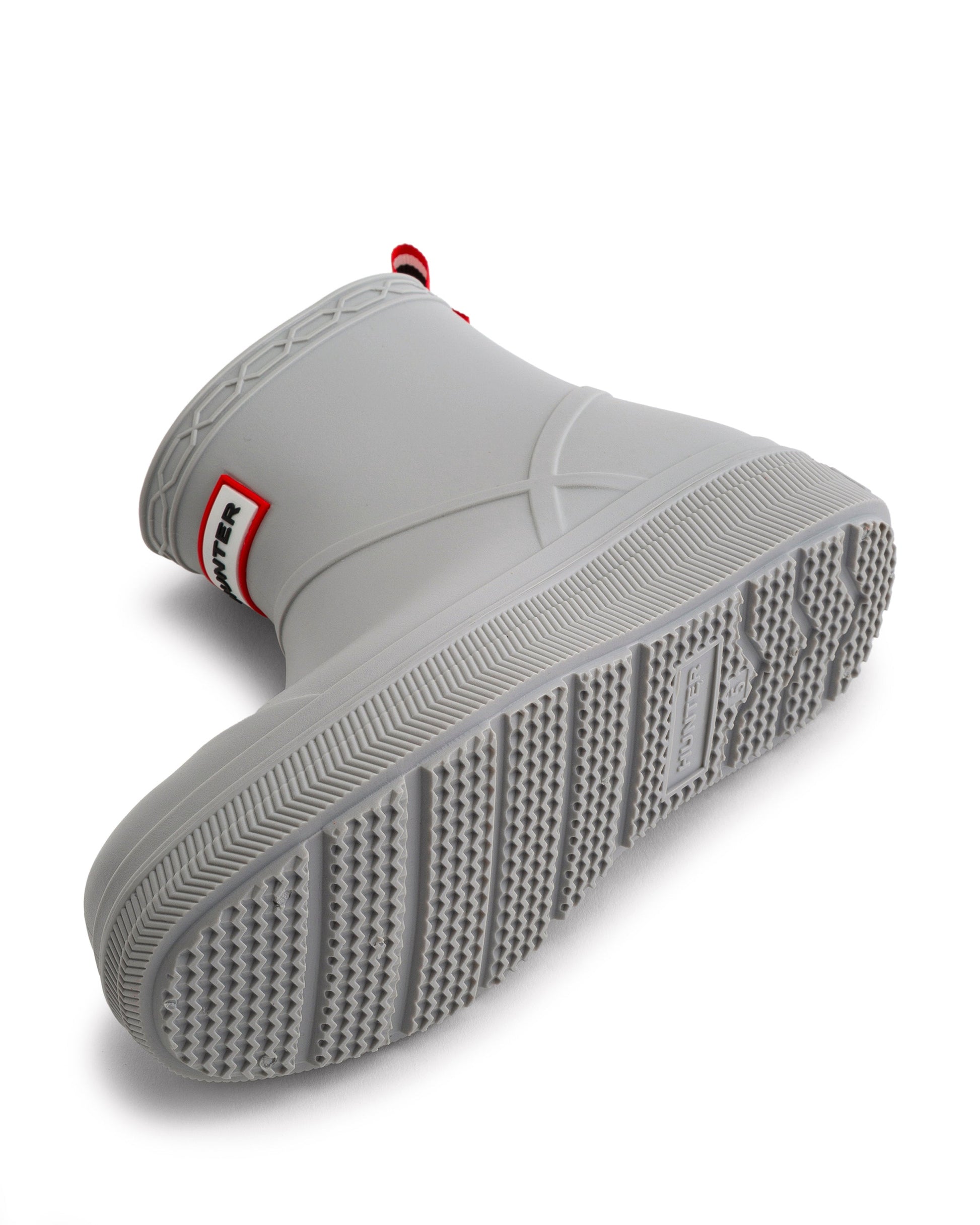ハンターのベストセラー「プレイブーツ」が新しく生まれ変わってデビューします。この新しいプレイモールデットブーツは、人気のプレイブーツのディテールはそのままに、PVC素材であることそして豊富なカラーバリエーションが大きな特徴です。ソールにはPLAYのエンボス加工が施されています。100%防水で、足首の上まですっぽりと覆うフラットなプラットフォームソールは、脱ぎ履きもし易く快適な履き心地を提供します。雨の日だけでなく、フェスなどのアウトドアシーンにも大活躍のレインブーツです。背面には、着脱に便利なプルタブが付いています。