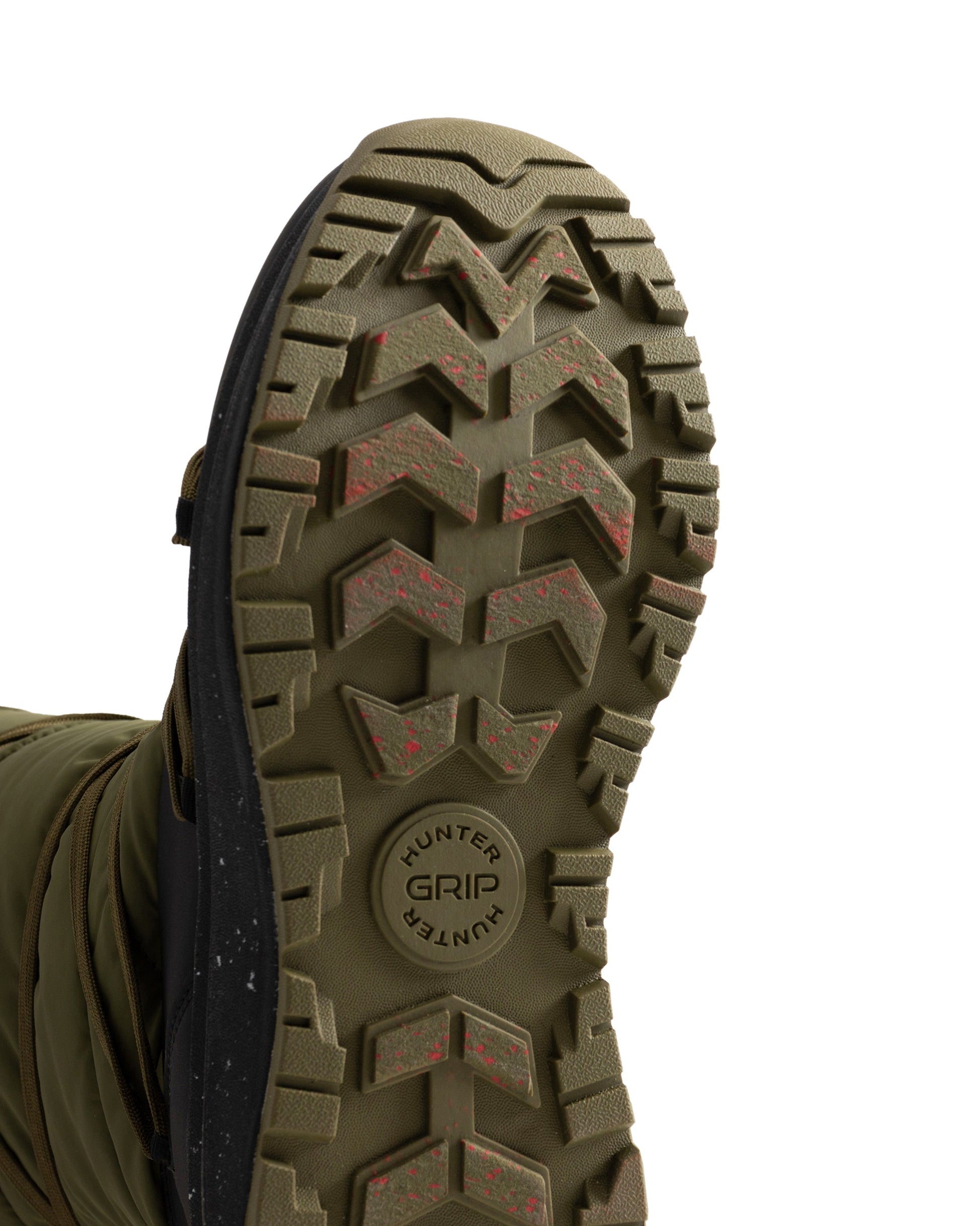 ハンターから新たなスノーブーツが誕生しました。独自に開発したアウトソール、”Hunter Grip”を使用した、ハンターグリップトールスノーブーツは寒冷地、氷上、雪上など、冬の厳しい環境で優れたグリップ機能を発揮するようにデザインされています。 低温環境に適したラバーコンパウンドに、細かいグリット粒子を配合することで、従来のスノーブーツよりも優れたグリップ機能を可能にします。軽量で、-30℃の環境まで対応する高い保温性と、防水機能も兼ね備えており、寒さの厳しい冬のレジャーにも最適な一足です。アッパーにはリサイクル素材を使用しています。靴紐はストライプパターンと同色の2種類あり、お好みのものを付け替え可能です。取り外し可能なPVC HUNTER GRIPロゴチャームが付いています。 <免責事項> 本製品は全ての路面での滑りを防ぐものではございません。また、アイゼンやスパイクの代わりになるものではございません。 本製品は屋内での使用を意図して作られたものではないため、屋内では床の表面を傷つける可能性がございます。 常識の範囲内で使用し、足元には十分ご注意ください。