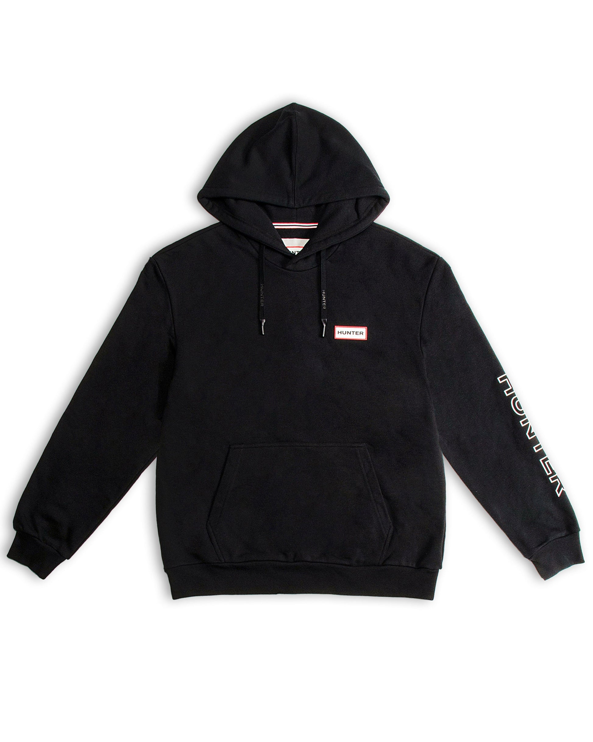 暖かい起毛ガーメントウォッシュドジャージーを使用したユニセックスプレイロゴフーディは1枚でも重ね着でも、様々なシーンで着られる完璧な1着です。着用感はレギュラーフィットで、前面にカンガルーポケットが施され、首元はカジュアルなラウンドネックになっています。さらに、縫い目にはハンターのラベルがあしらわれています。GOTS認証のオーガニックコットンとリサイクルポリエステルの混紡素材を使用し、フロントにハンターロゴのグラフィックプリントとクラシックなレッドのボックスロゴ入り。