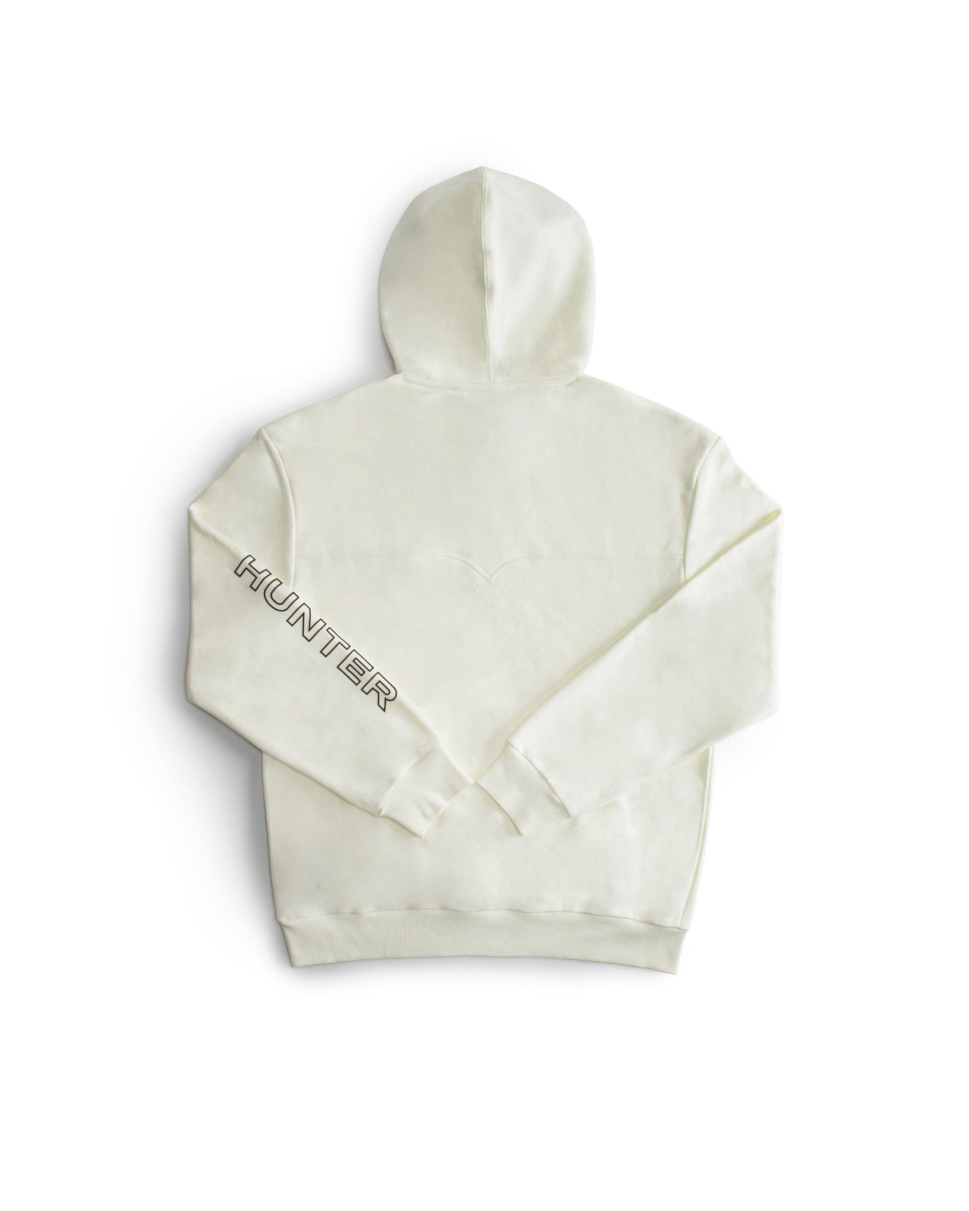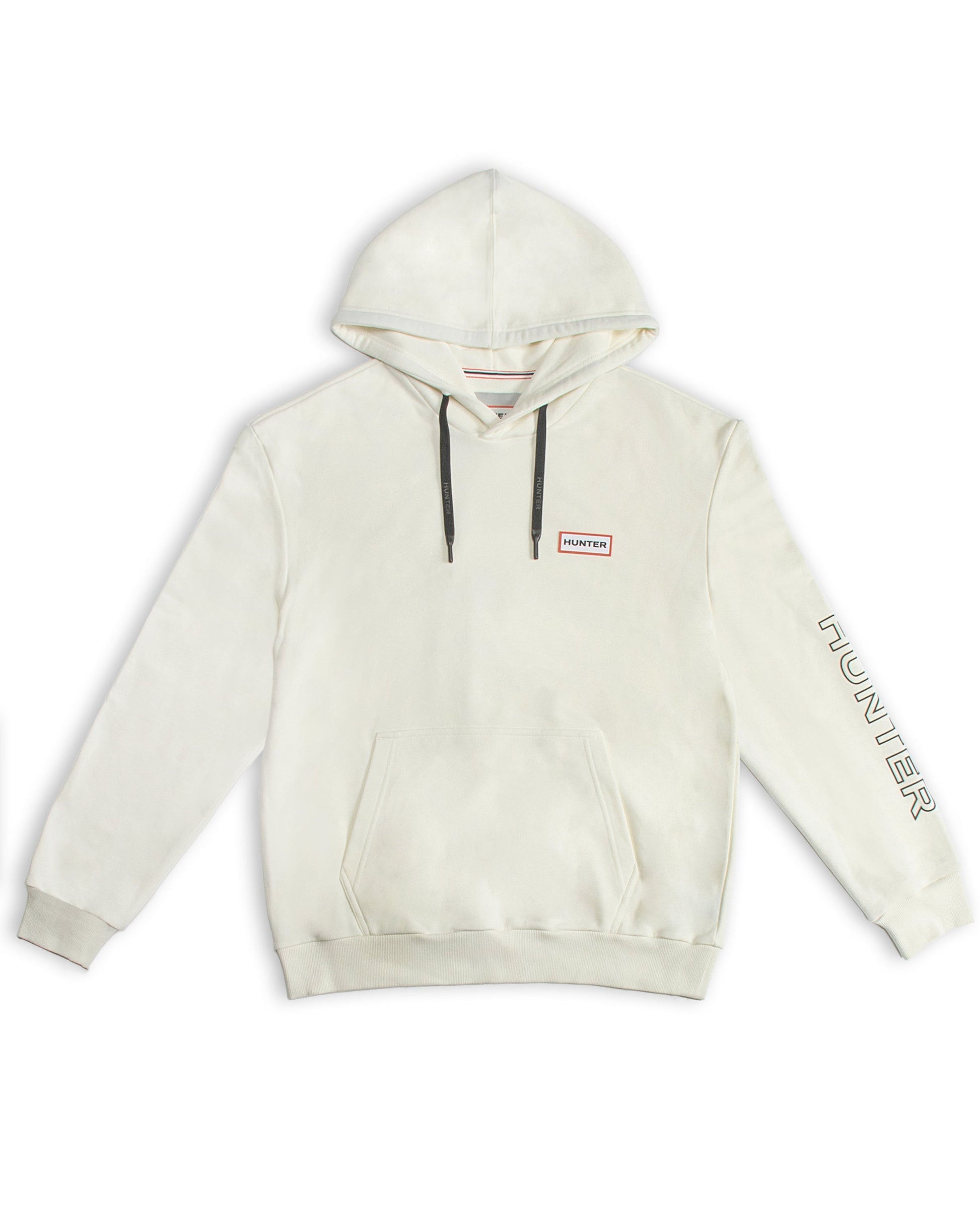 暖かい起毛ガーメントウォッシュドジャージーを使用したユニセックスプレイロゴフーディは1枚でも重ね着でも、様々なシーンで着られる完璧な1着です。着用感はレギュラーフィットで、前面にカンガルーポケットが施され、首元はカジュアルなラウンドネックになっています。さらに、縫い目にはハンターのラベルがあしらわれています。GOTS認証のオーガニックコットンとリサイクルポリエステルの混紡素材を使用し、フロントにハンターロゴのグラフィックプリントとクラシックなレッドのボックスロゴ入り。