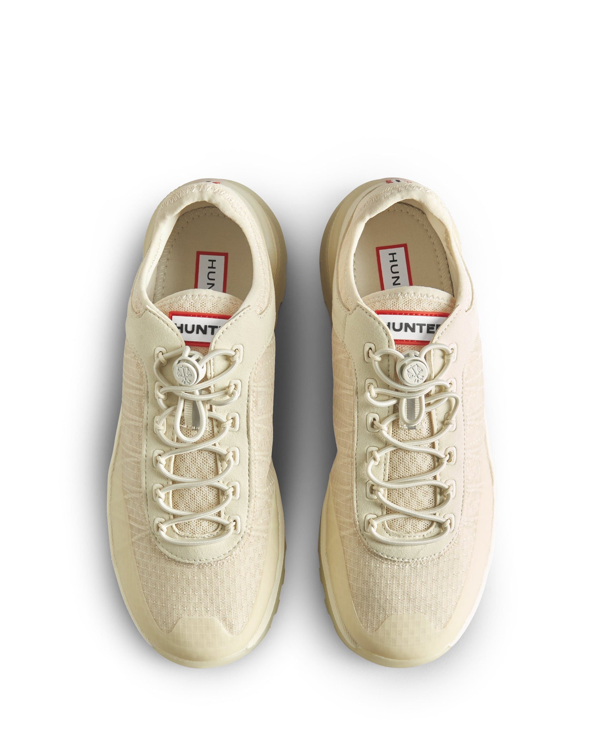 カジュアルなシティトレーナーにスポーツテイストをプラスしたハンターのトラベルトレーナーは、柔らかくで通気性に優れた100%リサイクルナイロンとメッシュの2層構造。軽量で衝撃吸収性に優れたリサイクルEVAミッドソールとリサイクルオーソライトの中敷きが優れた快適性と柔軟な履き心地を実現し、耐久性に優れたFSC®認証ラバーアウトソールがあらゆる路面に対応するグリップ力を発揮します。超軽量のTPUフォクシングラインが、雨からの保護をさらに強化します。