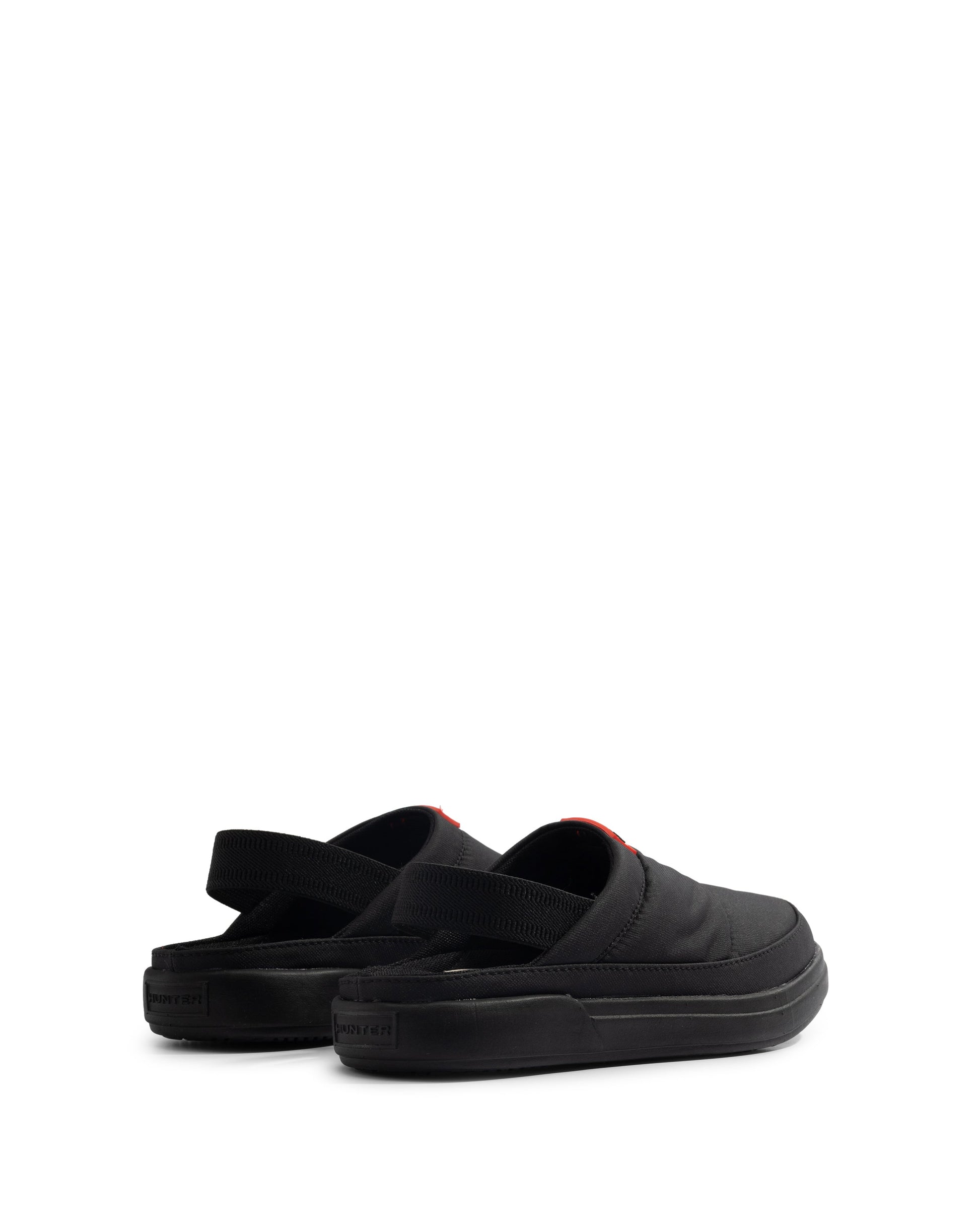 ハンターの冬の定番「イン/アウト」シリーズから、夏仕様のヒールストラップスリッパが登場。アッパーには、通気性が良く撥水機能付きのナイロン素材を使用し、夏の暑い日でもサッと履いてお出かけできるアイテムです。屋内/屋外どちらでも履けるこのスリッパは、日常使いは勿論キャンプなどの夏のレジャーにも最適な一足です。