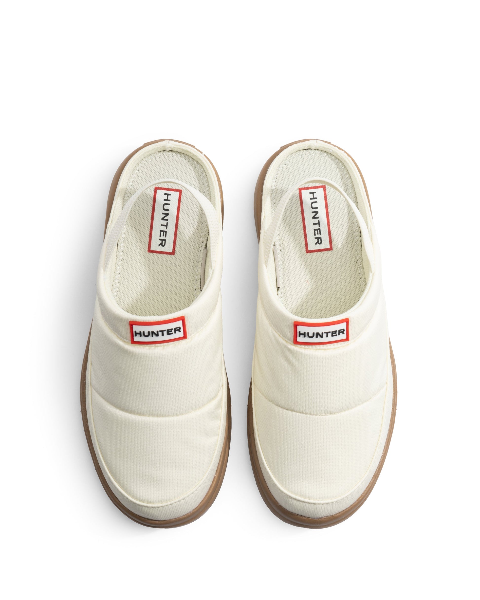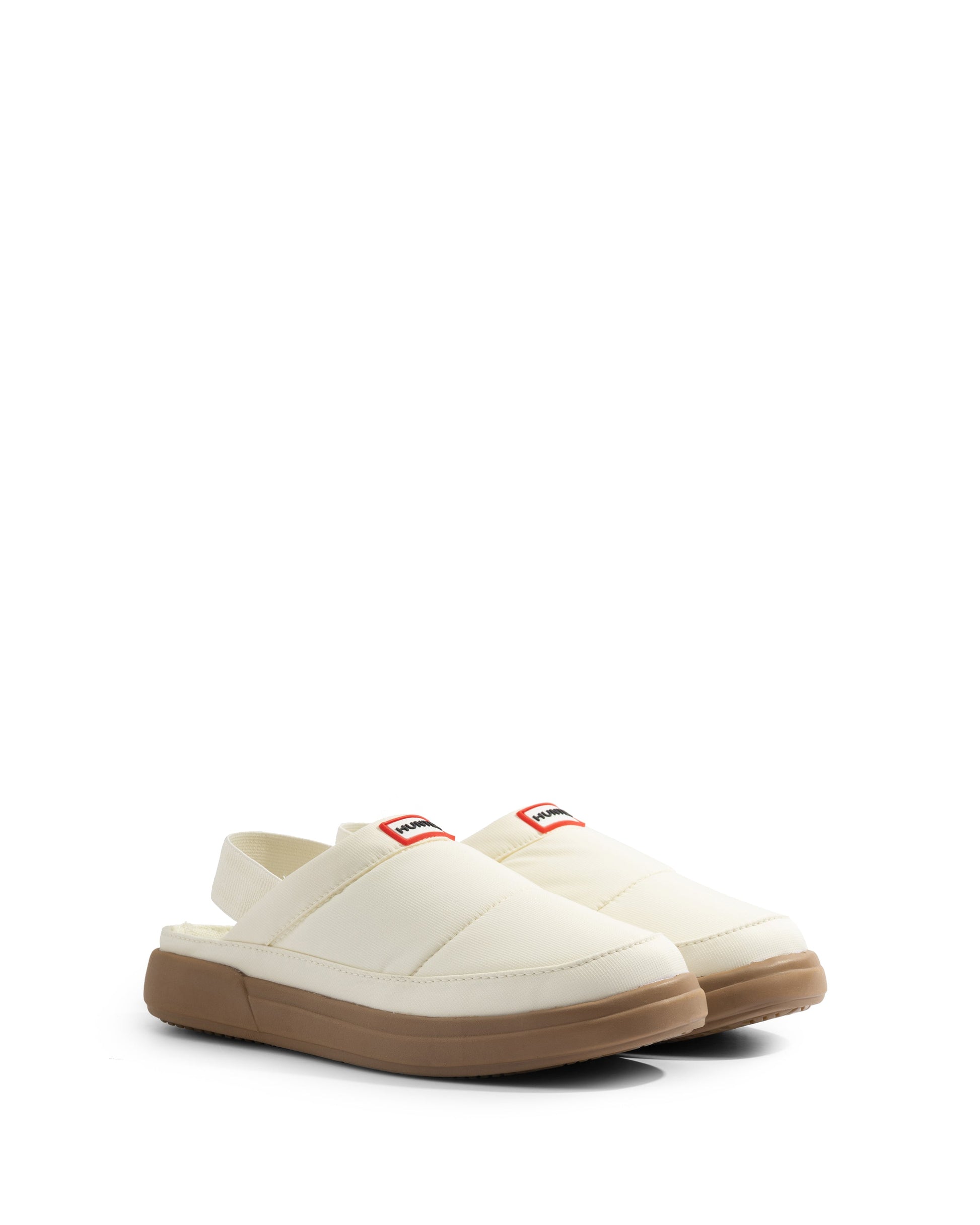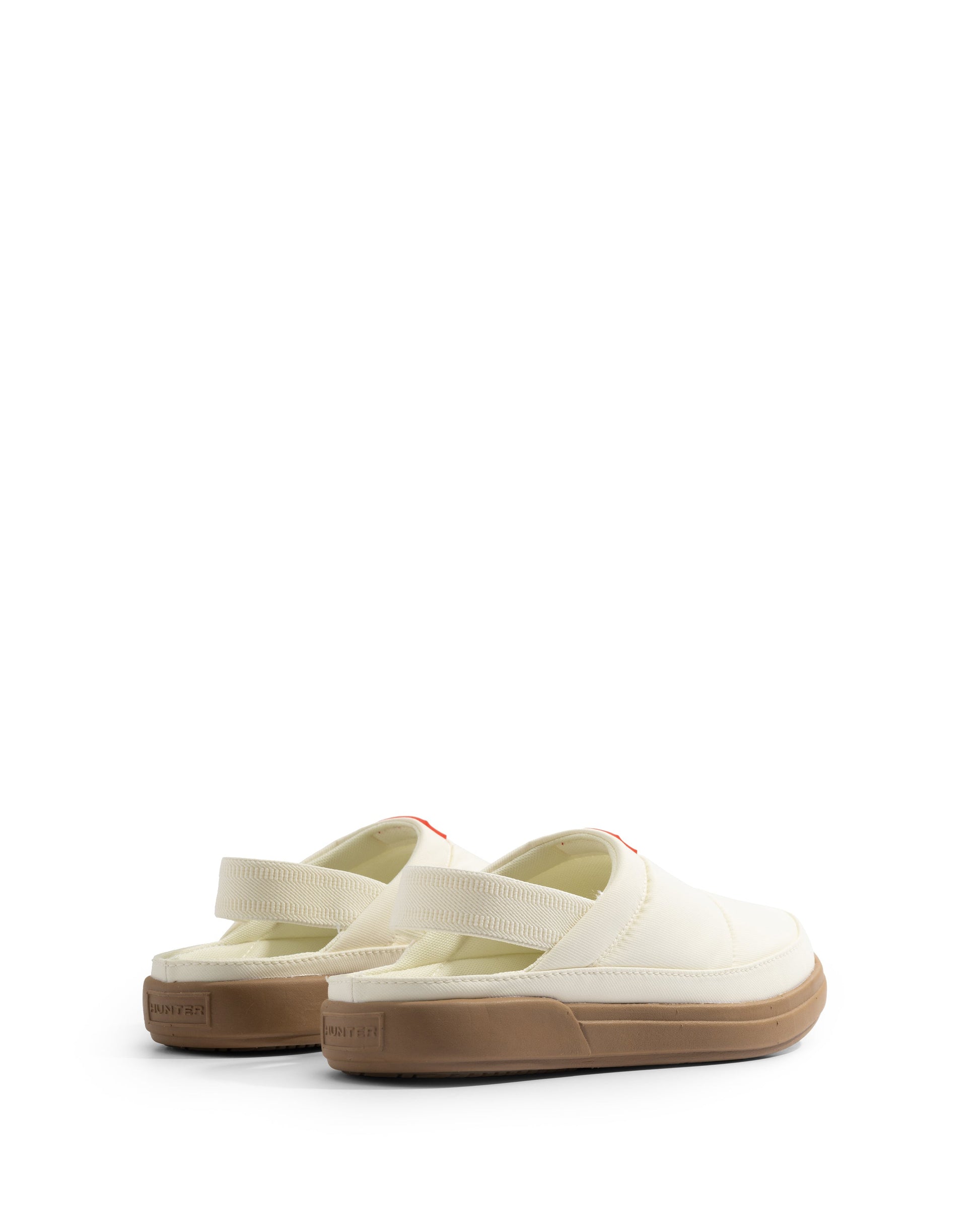 ハンターの冬の定番「イン/アウト」シリーズから、夏仕様のヒールストラップスリッパが登場。アッパーには、通気性が良く撥水機能付きのナイロン素材を使用し、夏の暑い日でもサッと履いてお出かけできるアイテムです。屋内/屋外どちらでも履けるこのスリッパは、日常使いは勿論キャンプなどの夏のレジャーにも最適な一足です。