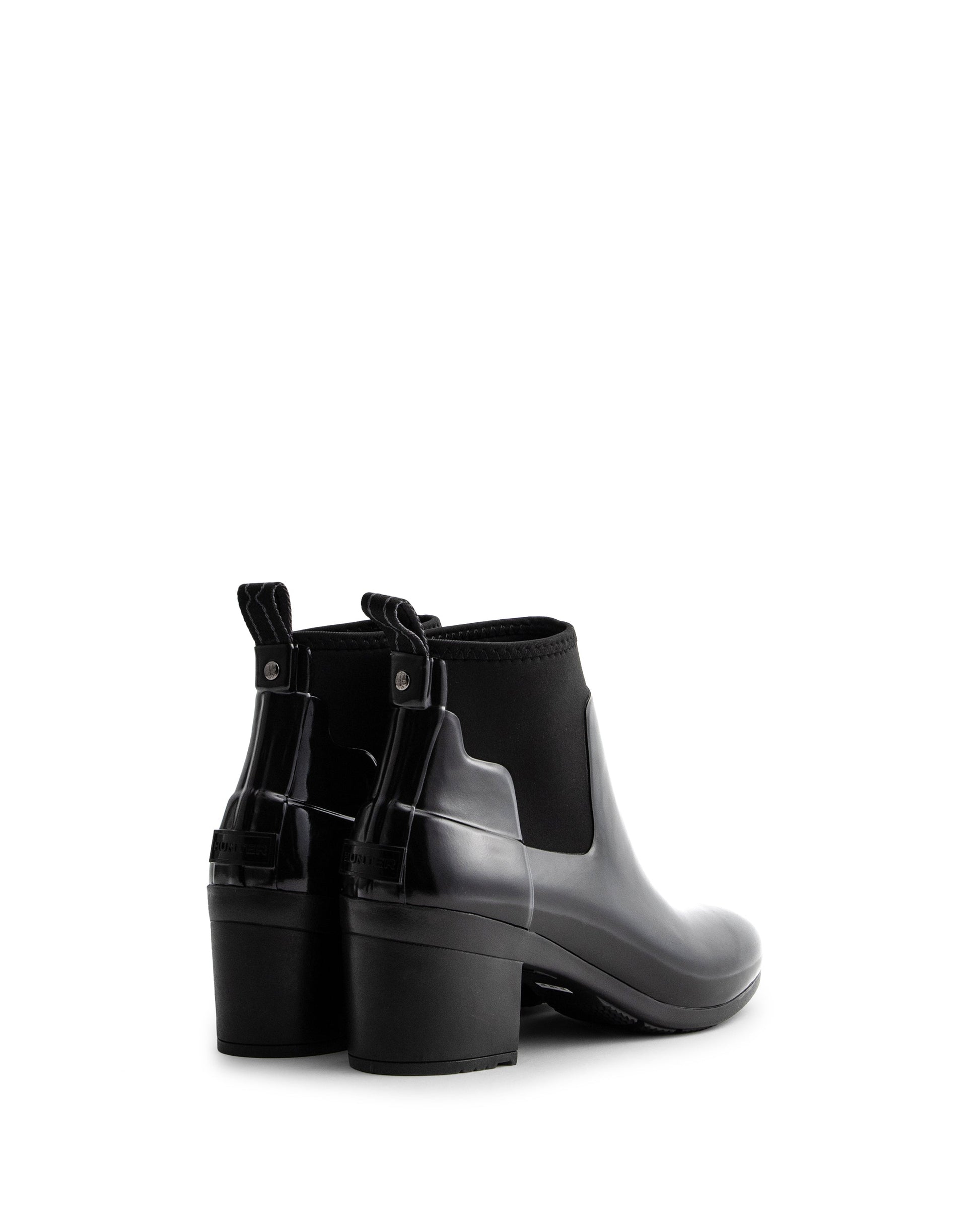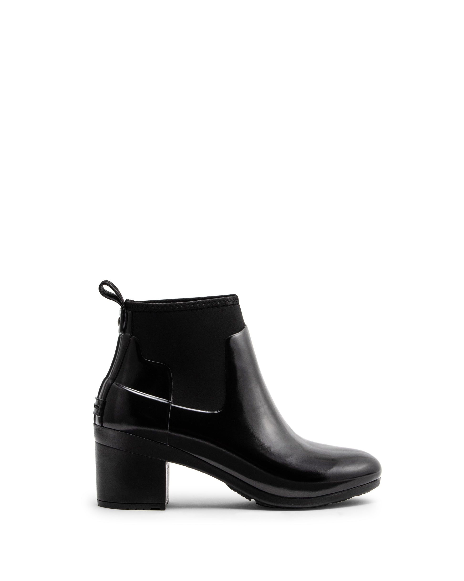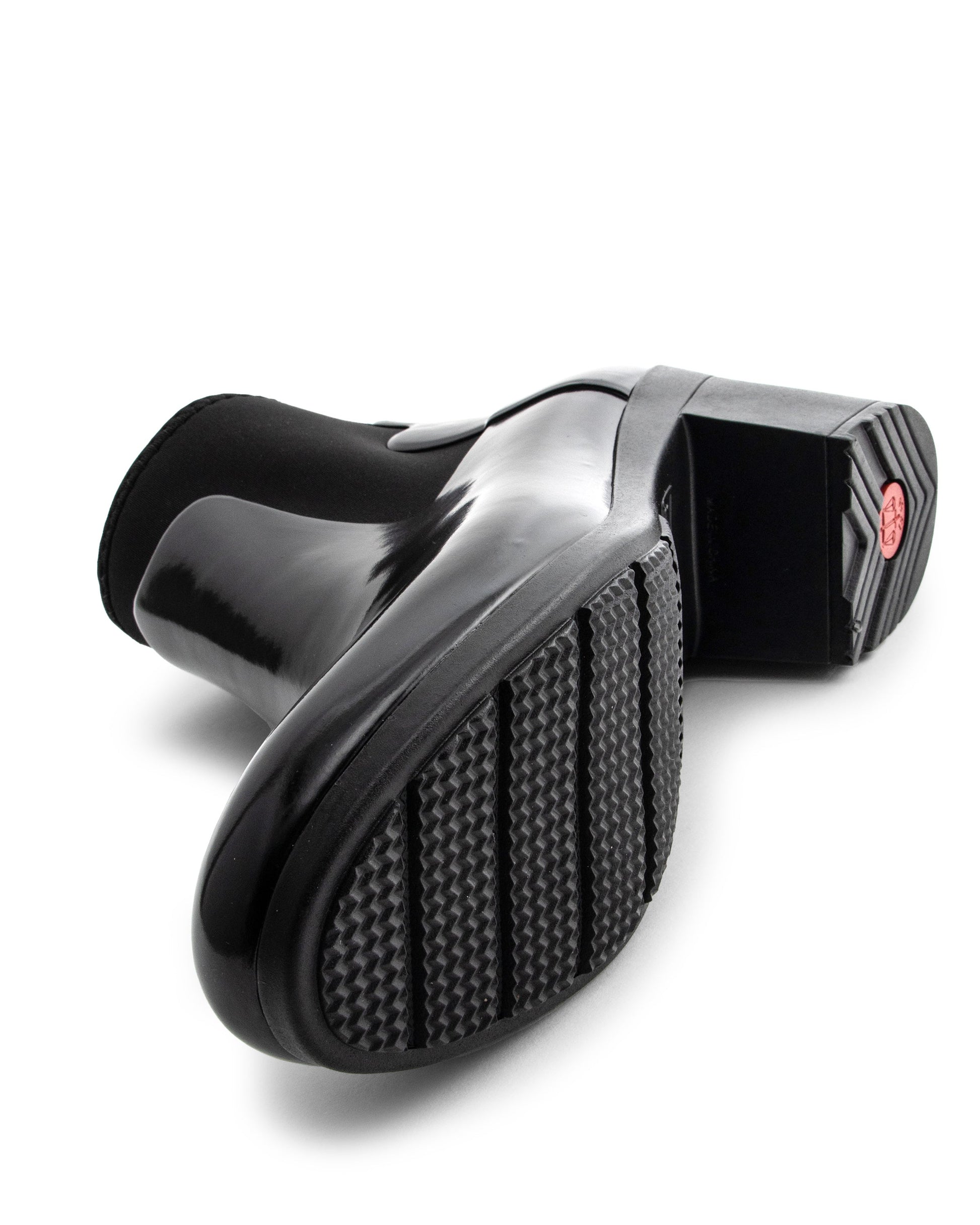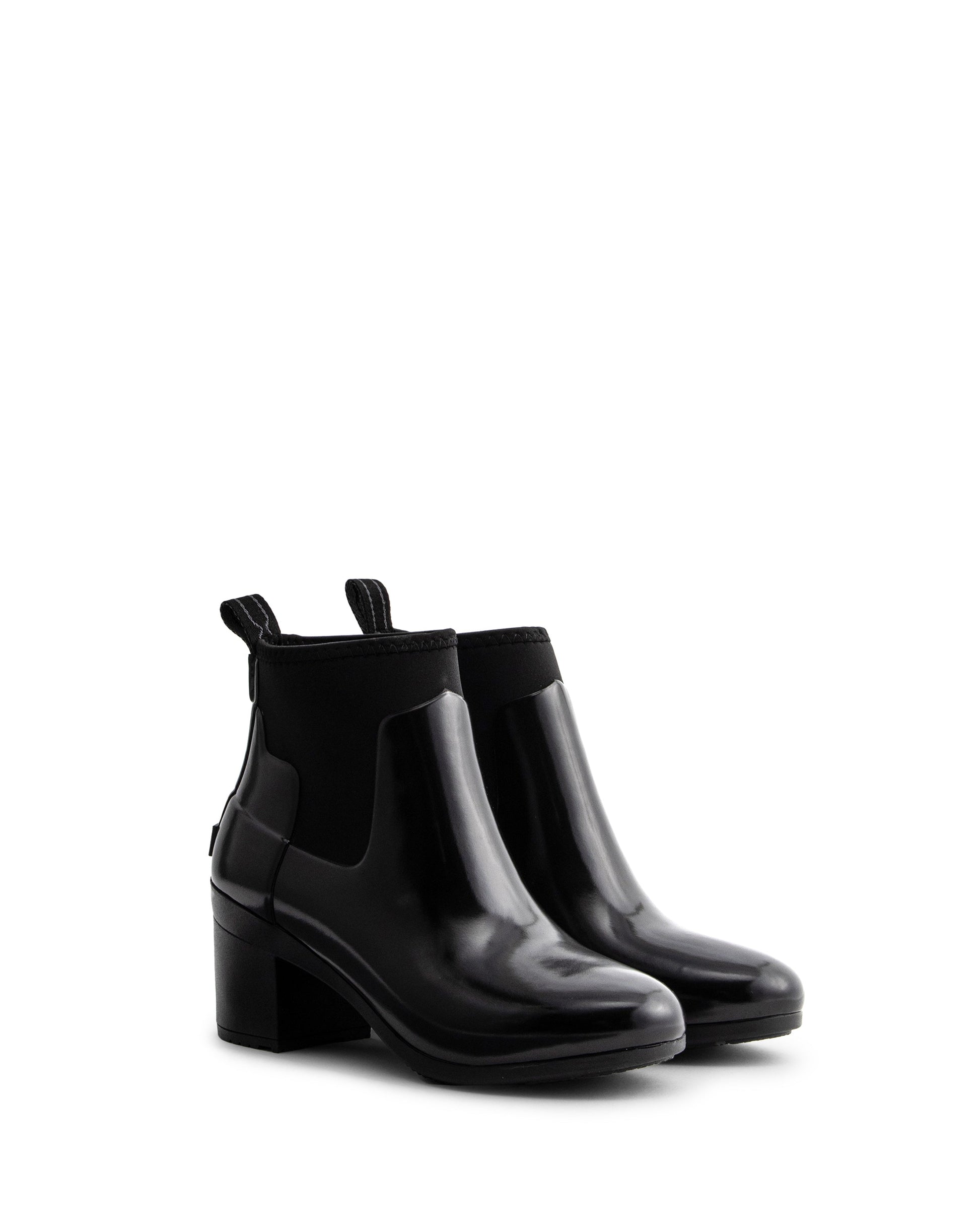 リファインドミッドヒールブーツは、スリムなフィット感と成型された分厚いアウトソール、さらにラバー層の数を減らすことで軽量さを感じる合理的なデザインになっています。伸縮性のあるマチと後ろのプルタブで着脱も簡単。裏地はリサイクルポリエステル100%で、光沢仕上げで防水性100%です。