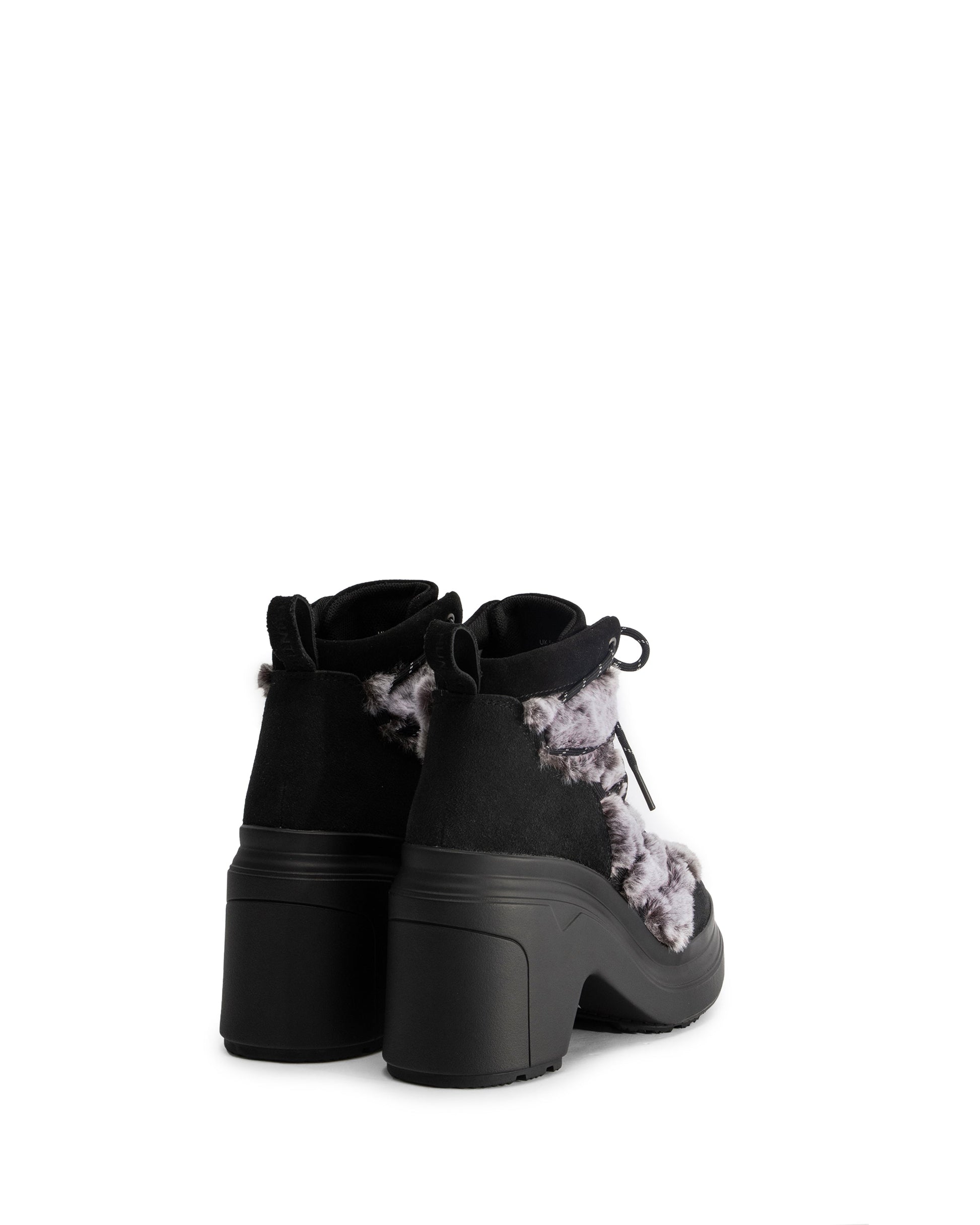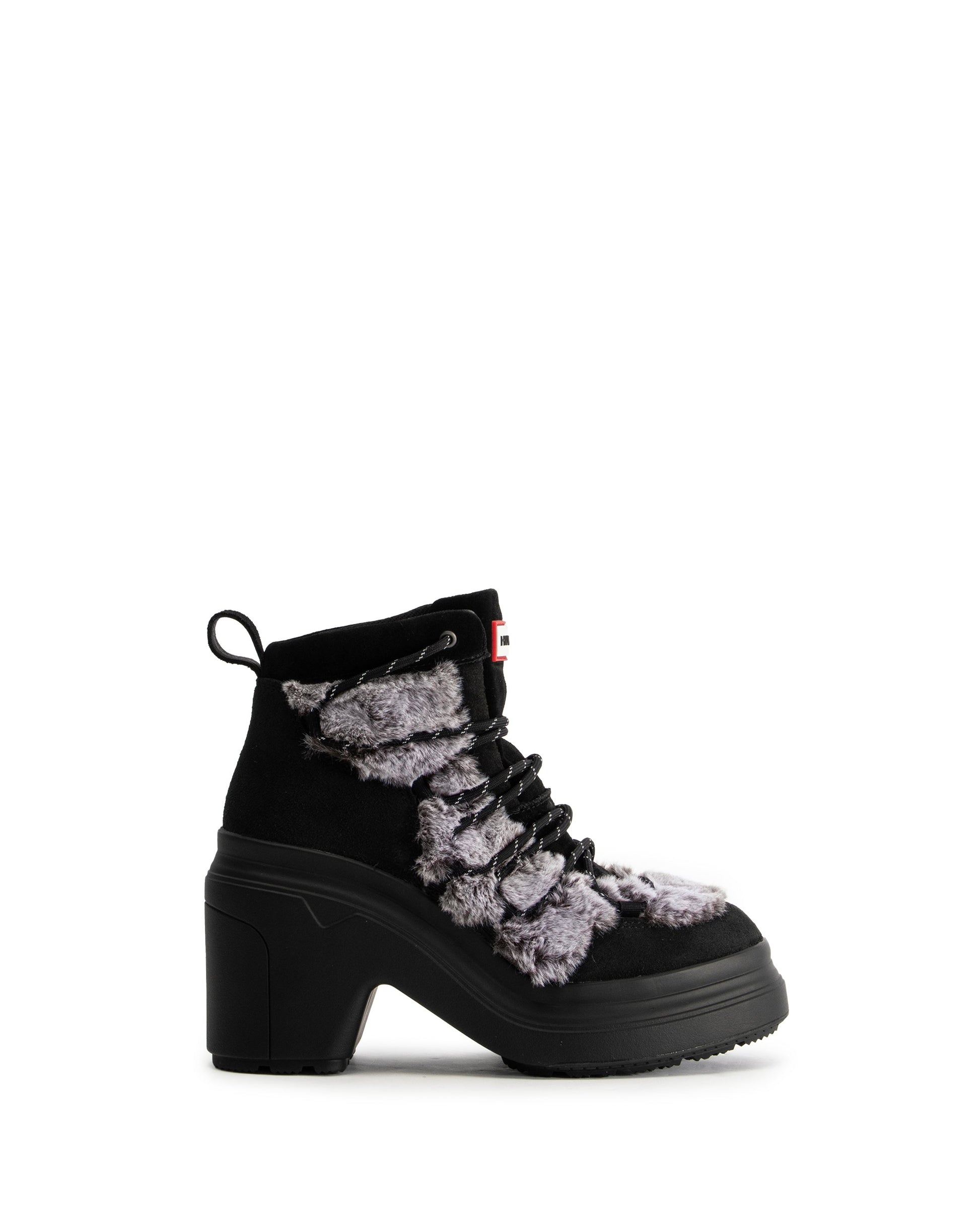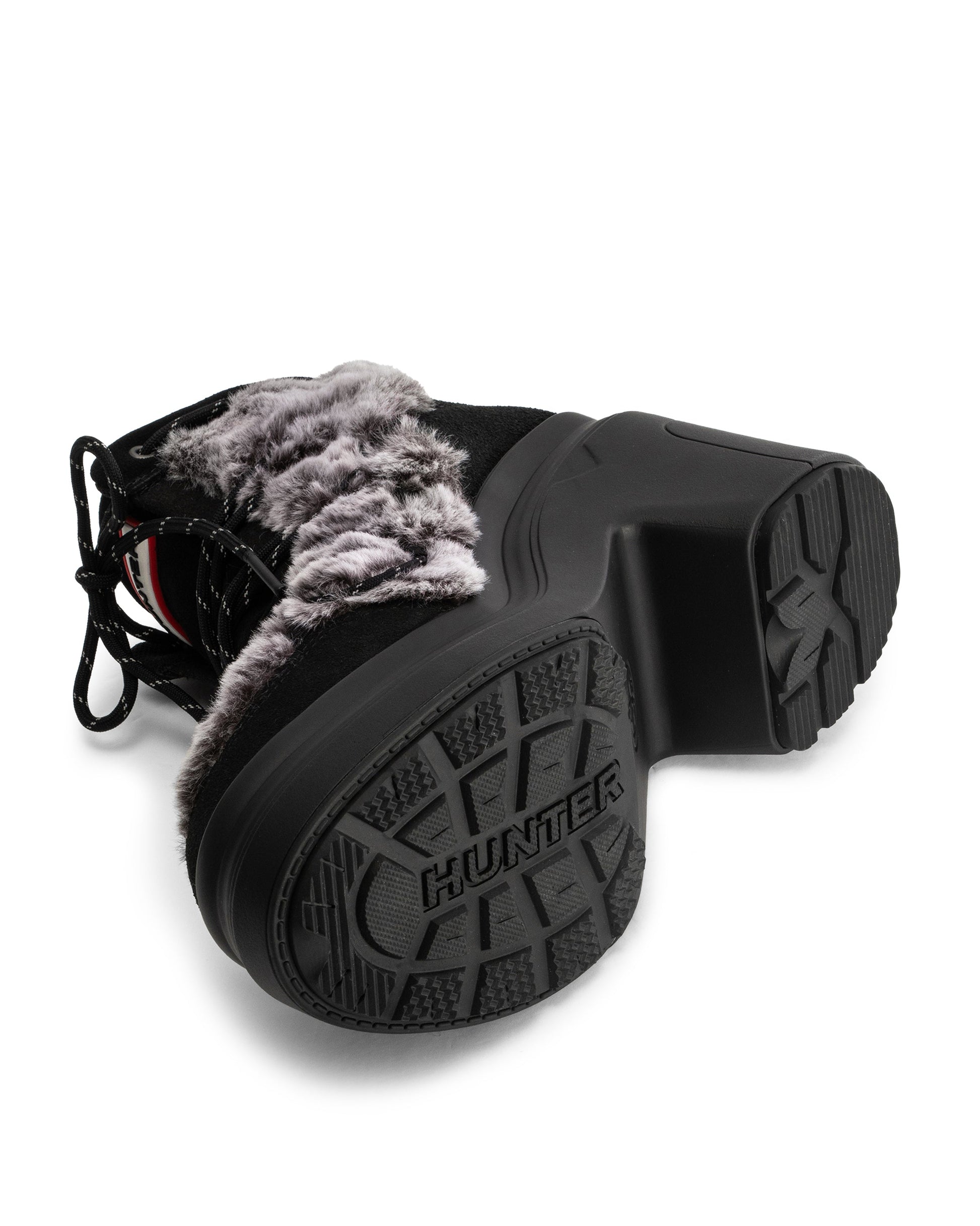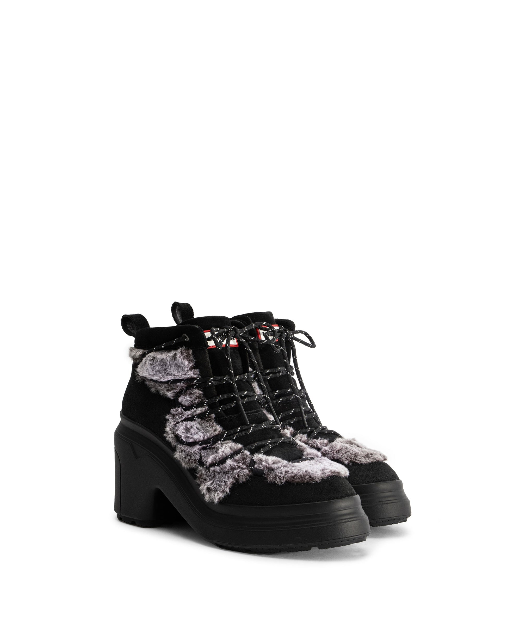 ハンターの新しいハイヒールシルエット、エクスプローラーアンクルレースアップフェイクファーヒールブーツは、アッパーに耐水性レザーと柔らかいフェイクファーを使用。ポリウレタン製のミッドソールにより軽量化を実現し、ソールは耐久性ラバーアウトソールを使用、パッド入りの履き口で快適な履き心地を提供します。耐水性確保のために内側にハイドロガードを使用した雨に強い防水加工を施し、ポリウレタン製のフォクシングで保護性能をさらに高め、一日中履ける一足です。アウトソールはFSC®認証の天然ゴム製で、森林管理協議会(Forest Stewardship Council®)の基準に従って独自に監査された森林から採取され、裏地は100%リサイクルポリエステルメッシュを使用しています。