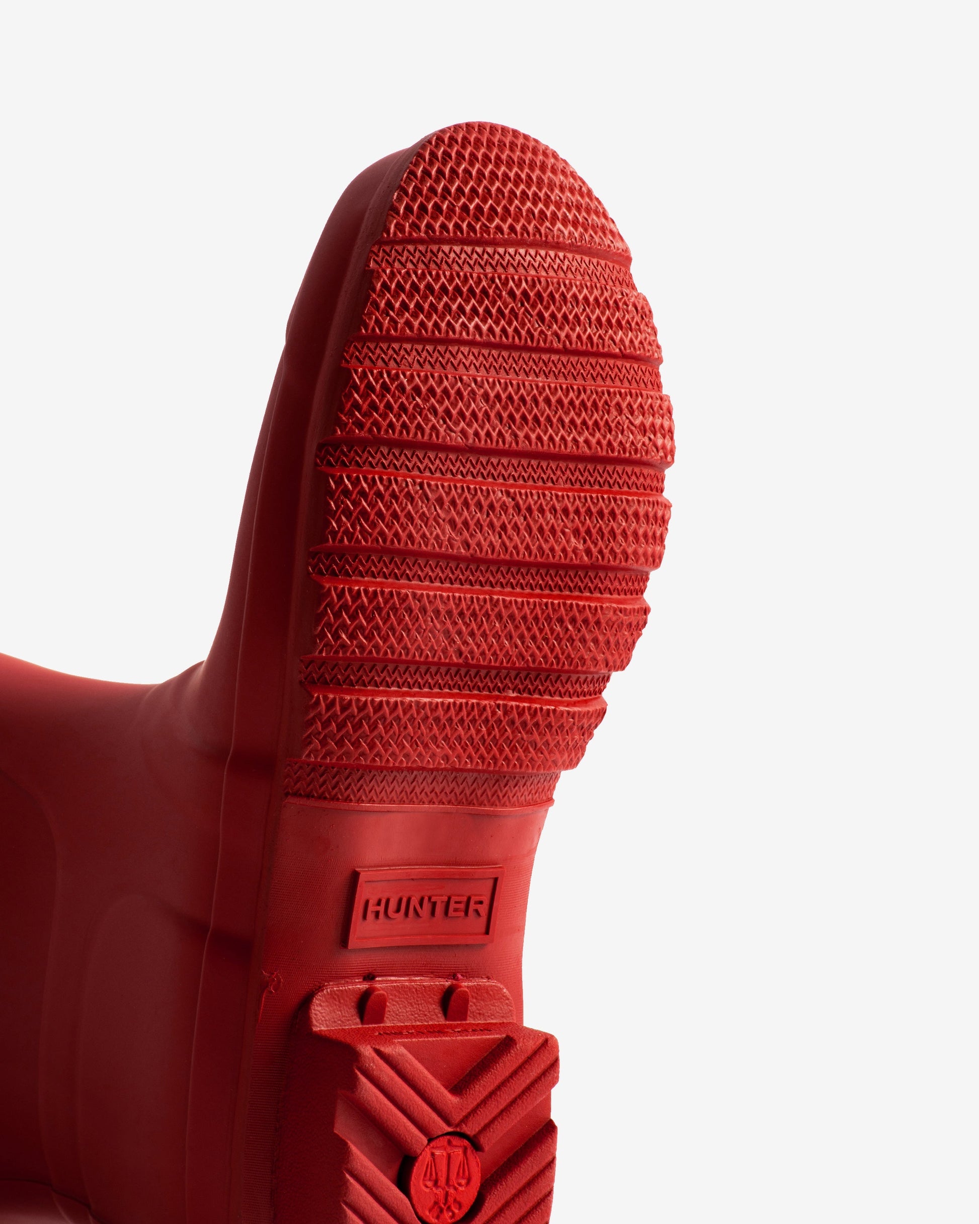 レディースオリジナルショートレインブーツは、アイコニックなハンターオリジナルトールブーツの短いバージョンで、雨天に最適です。天然ゴムを使用し、3日間かけてひとつひとつ手作業で組み立て、加硫加工を施しています。ハンターオリジナルのトレッドパターンと快適な100%リサイクルポリエステルの裏地が、この100%防水ブーツのデザインを完成させています。
