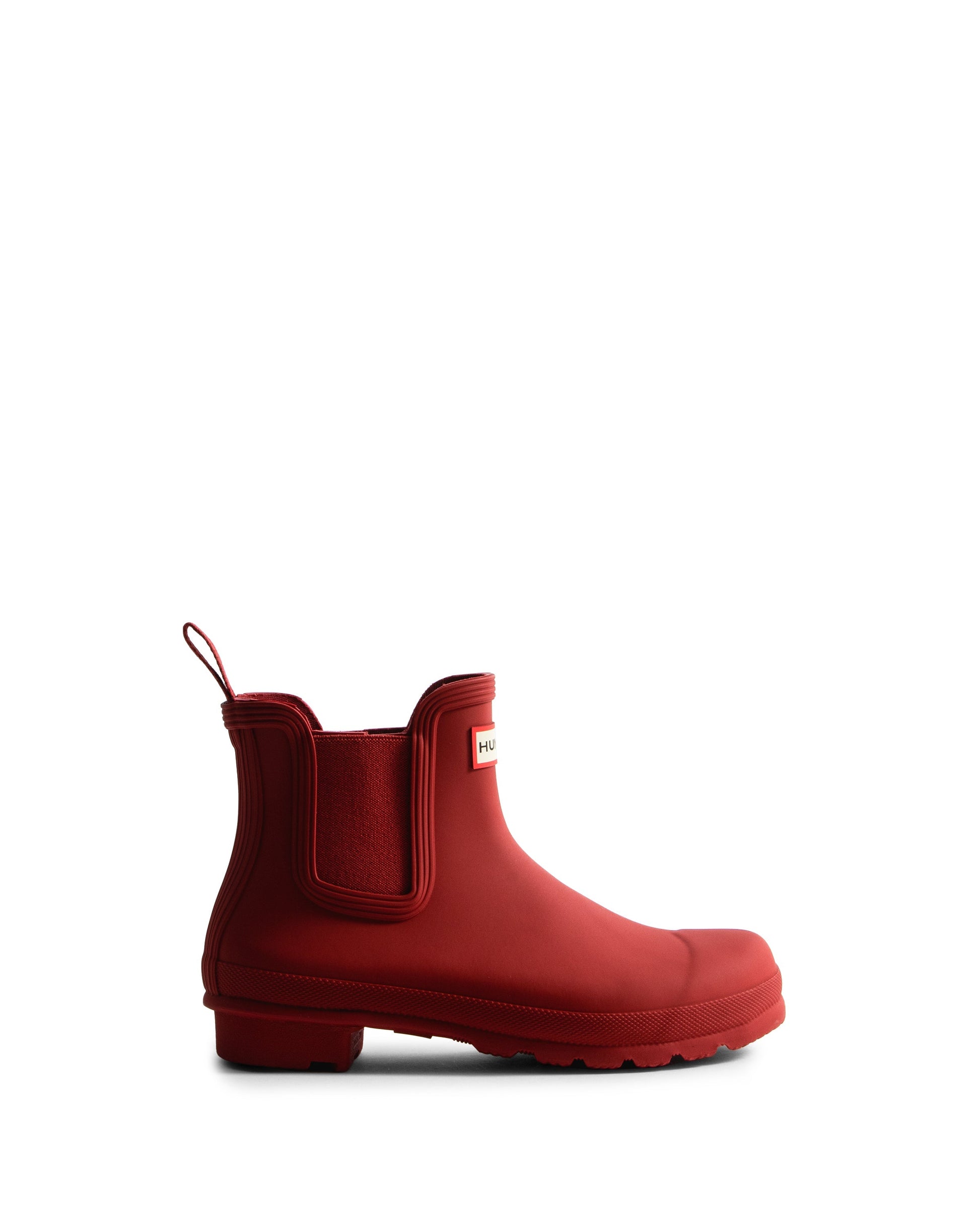 雨に強いハンターのチェルシーブーツは、天然ゴムを使用し手作業で作られ、優れた保護性能を発揮する加硫加工が施されています。伝統的なチェルシーブーツのアイコニックな特徴はそのままに、伸縮性のあるマチとナイロンのプルタブで履きやすくなっています。ハンターオリジナルのトレッドパターンと快適な100%リサイクルポリエステルの裏地が、この100%防水ブーツのデザインを完成させています。