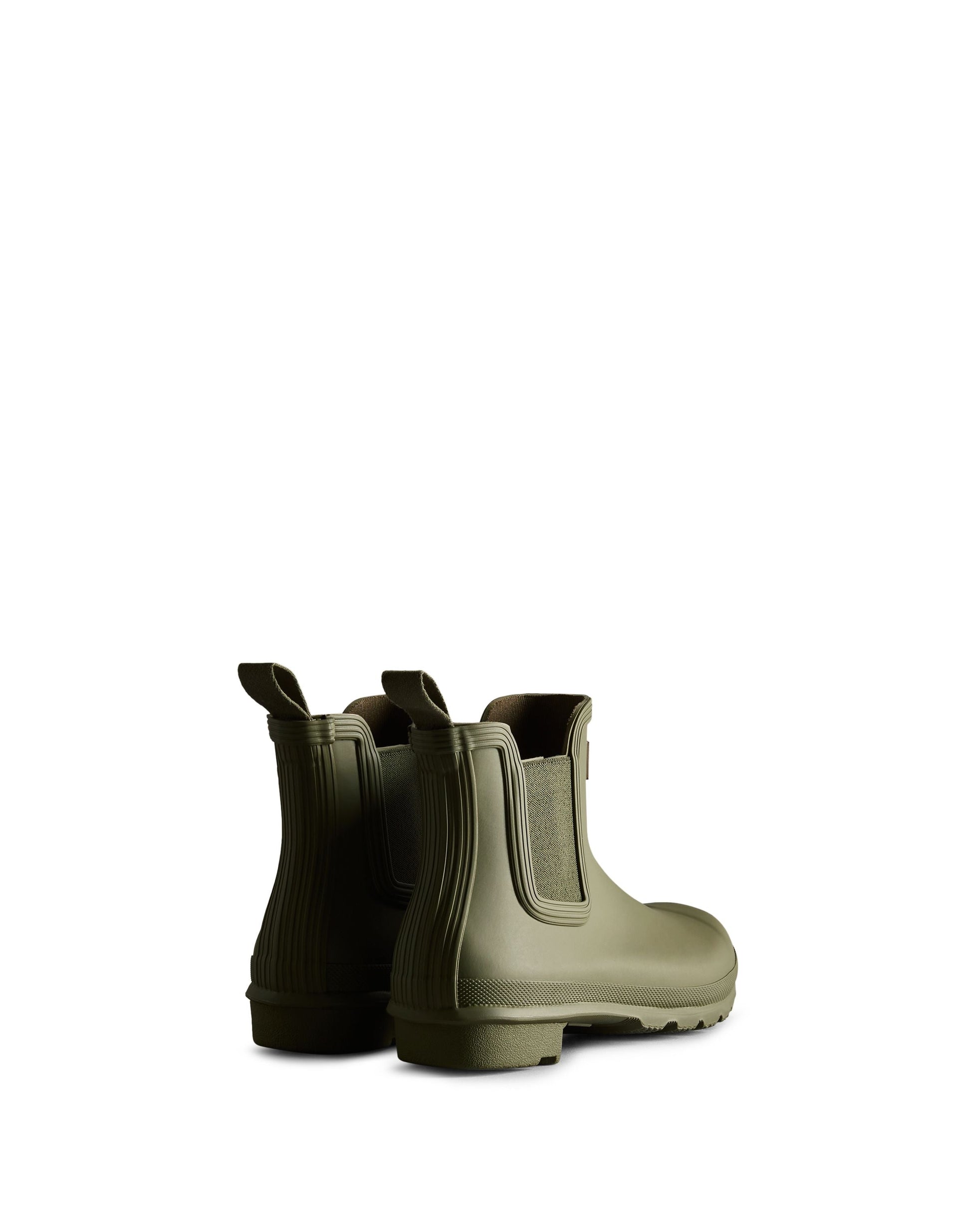 雨に強いハンターのチェルシーブーツは、天然ゴムを使用し手作業で作られ、優れた保護性能を発揮する加硫加工が施されています。伝統的なチェルシーブーツのアイコニックな特徴はそのままに、伸縮性のあるマチとナイロンのプルタブで履きやすくなっています。ハンターオリジナルのトレッドパターンと快適な100%リサイクルポリエステルの裏地が、この100%防水ブーツのデザインを完成させています。