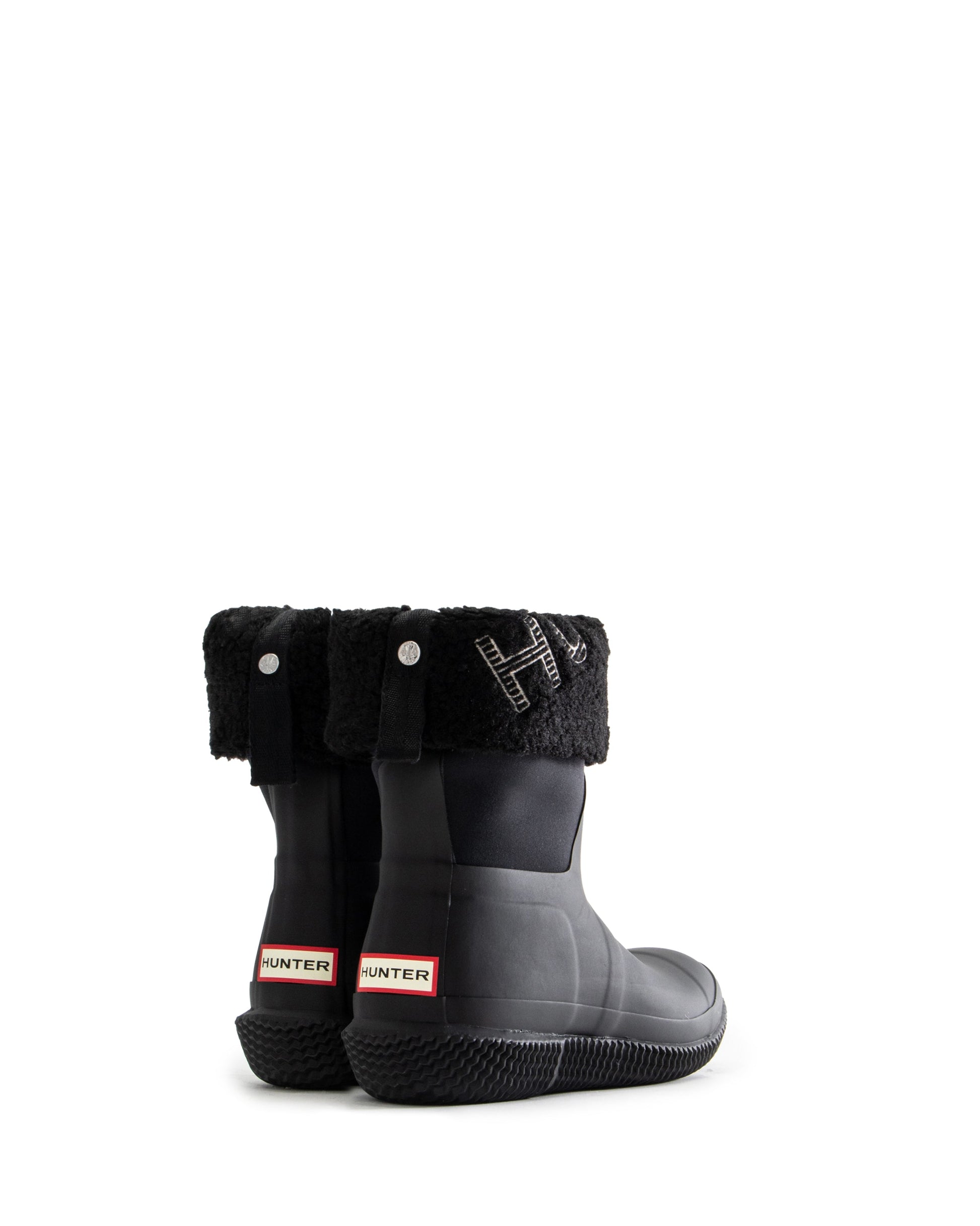 ウィメンズイン/アウトハンターロゴステッチブーツは、滑りやすい冬の日に最適なしっかりとしたグリップ力のあるアウトソールと高い防水性を備えています。天然ゴムと保温性の高いネオプレンを使用したハンドメイドのブーツは、折り返した部分にハンターのロゴがプリントされてます。ビーガンムートンフリースの裏地と保温性の高い中敷きが特徴で、-5℃(23°F)の気温でも着用可能です。