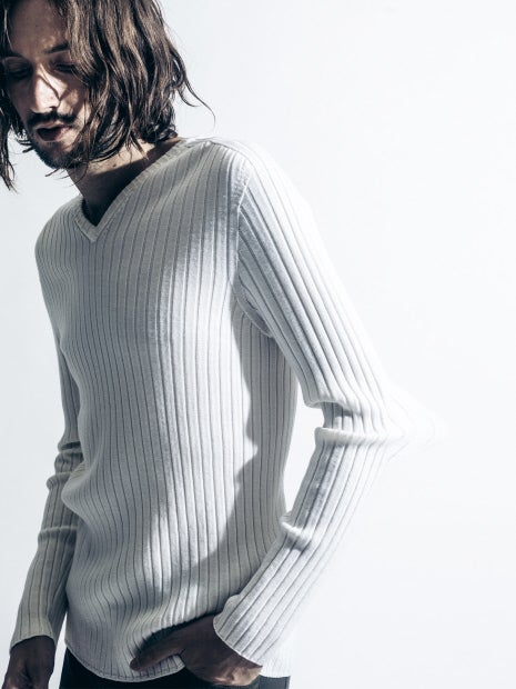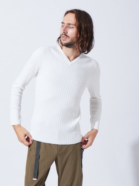 ワイドリブホールガーメントVネックニット