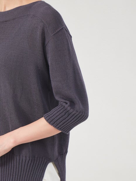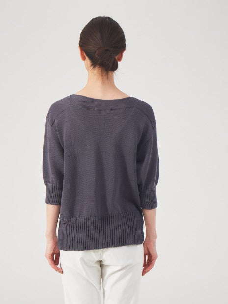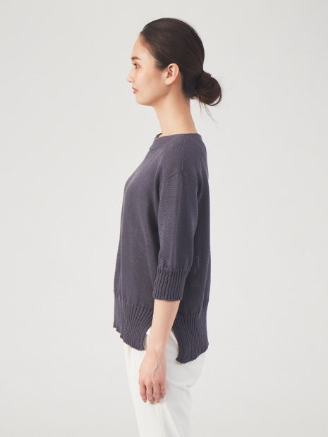 麻のようなドライタッチのコットンで夏まで着られる優秀なニット。