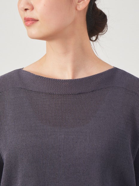 ボートネックの程よいあき感で女性らしさもプラスしお仕事などでもお使い頂きやすいデザインに。