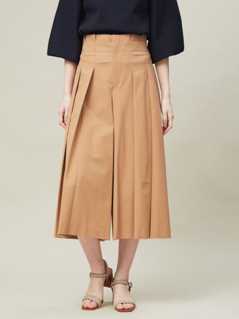 夏らしいサラリとした素材感のフレアータックパンツ。