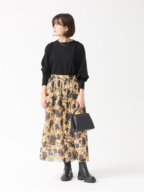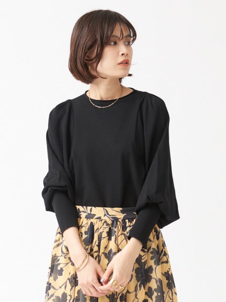 ボリュームスリーブが華やかで女性らしい雰囲気を演出します。