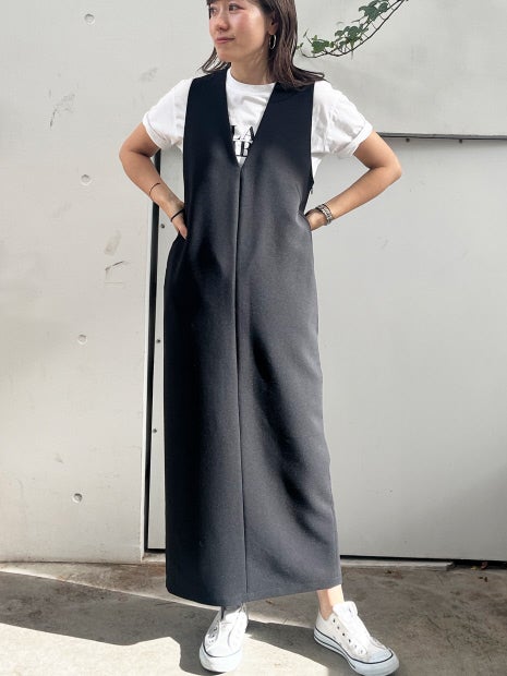 気軽にレイヤードスタイルを前後2WAYで楽しめるジャンパースカート。