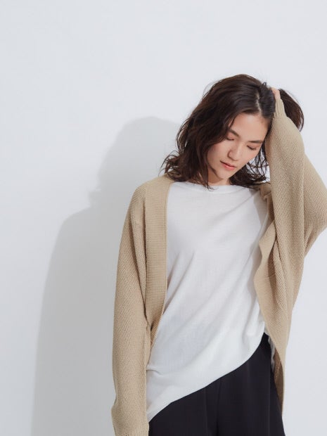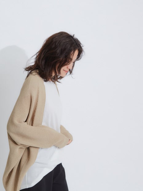 ・ドルマンスリーブで風通しがよく、ボリューム袖でも羽織れます。・コットンに特殊な加工を施し、麻のような清涼感ある風合いに仕上げました。