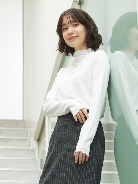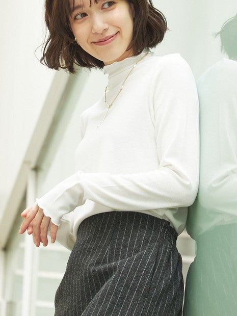 ホワイトは若干透けますが、その他のカラーは透けすぎず一枚でも着やすい生地感。ほんのりラメが入っているので上品さも◎