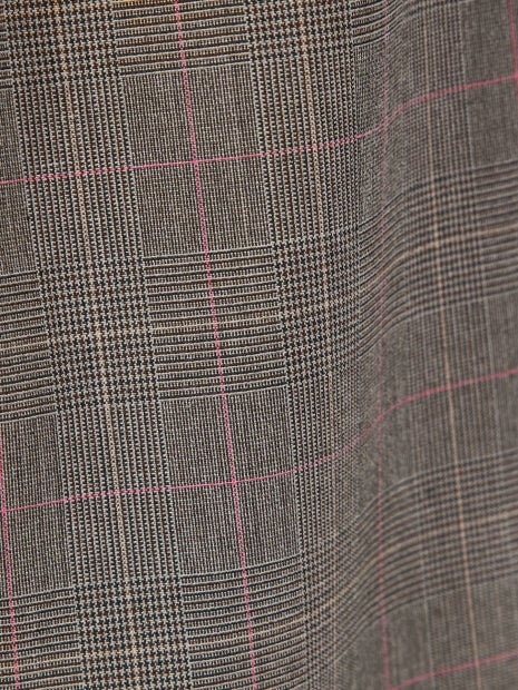秋らしいカラーのグレンチェック柄の生地を使用。軽くてさらっとした表面感が高見えします。