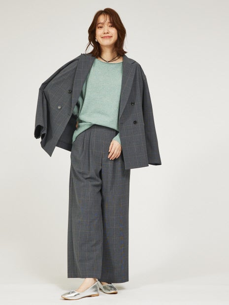 【セットアップ対応】グレンチェックタックワイドパンツ