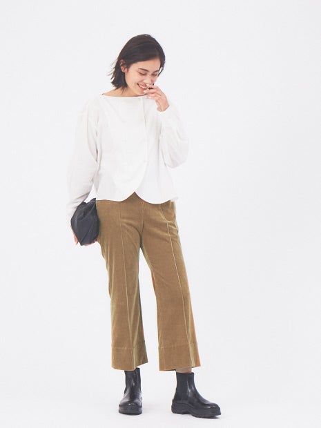 ワイドめなパンツとバランスよく着れるように、あえてコンパクトな丈感に設定。