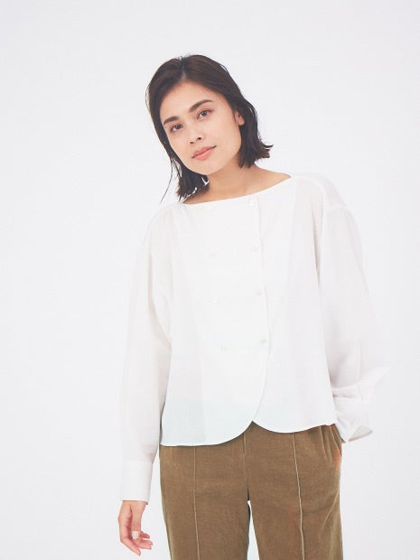 丈感を短めに設定することで様々なボトムスと合わせていただきやすいブラウスを作りました!