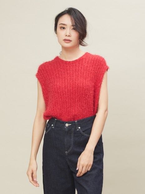 フェザーヤーンを使用し、ふんわりとした表面感が特徴的なニット。